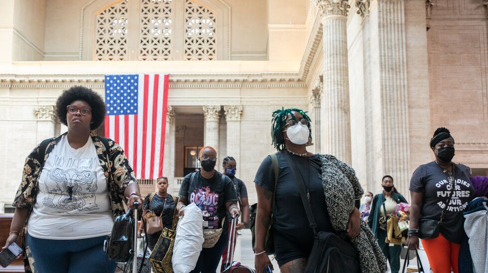 She noted that the fight for access to abortions is tied to the fight for civil rights of Black and LGBTQ individuals. She and about 30 other activists from Louisiana, Tennessee and Mississippi — states that already or will soon ban almost all abortions — traveled via train 13 to 23 hours to Chicago this week as part of “Black August Freedom Rides” to show how far some people may need to travel to get safe, legal abortions.