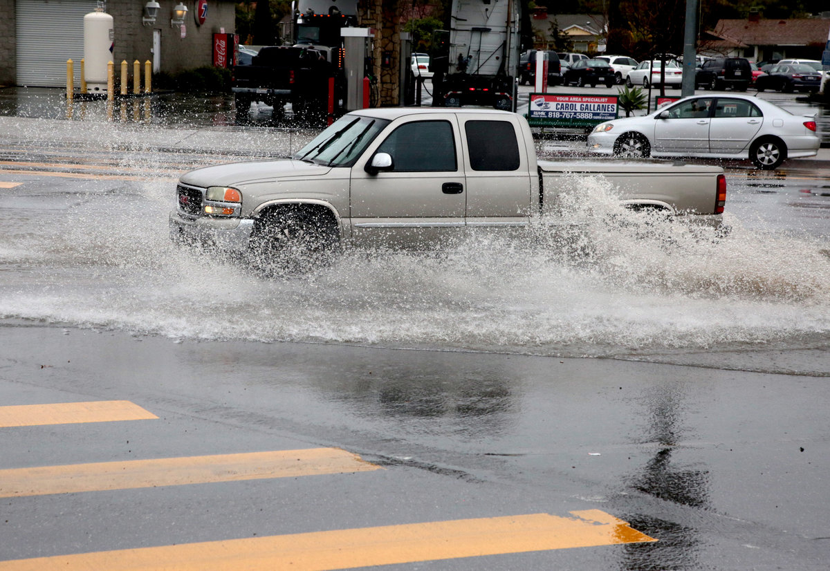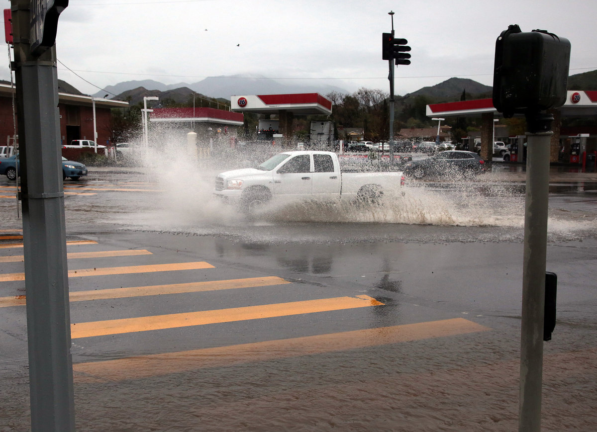 Several roadways in coastal counties northwest of Los Angeles were flooded, and there have been a number of car crashes on slick roadways, though no deaths, California Highway Patrol spokesman Danny Maher said.