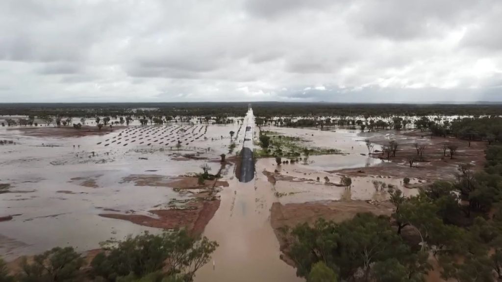 )Residents in south-west Queensland say there are "rivers of water" flowing on their properties as rain continues to drench the state.