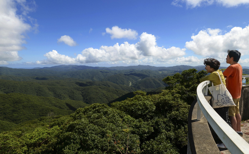 UKEN, Kagoshima -- Although I was on an island, the sea appeared small and distant from where I stood on an observation deck. Rows of subtropical laurel forests sprawled out below. The contrast of blue skies and white clouds made for a vivid, expansive panoramic view.