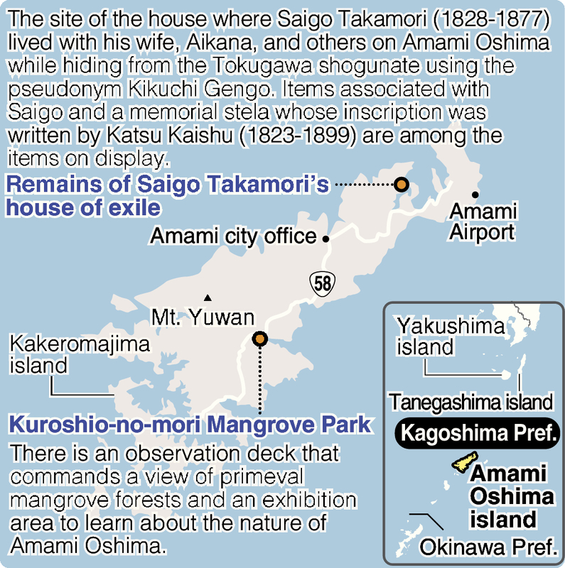 Amami-Oshima island is roughly located between mainland Kyushu and Okinawa Island. Mt. Yuwan straddles the border between the villages of Uken and Yamato in the island's west. The mountain stands 694.4 meters above sea level, making it the tallest in Japan south of the Tokara Islands. Amami-Oshima, a trove of flora and fauna that have evolved in isolation, is included in the listing "Amami-Oshima, Tokunoshima island, the northern part of Okinawa Island, and Iriomote Island," which has been nominated by the Environment Ministry and other agencies for World Heritage status.