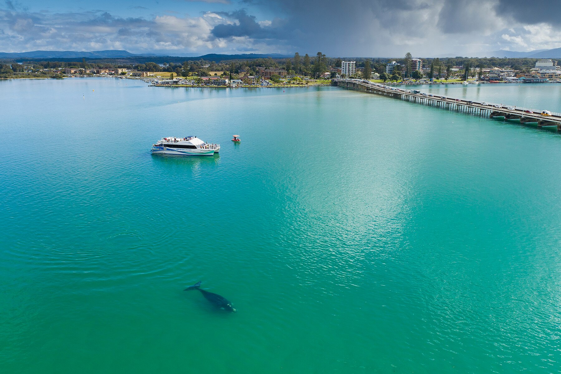 "I've seen two other whales in Wallis Lake but they were right at the entrance and didn't go on the western side of the bridge, whereas this big southern right whale has actually ended up on the western side of the bridge — it's passed under the bridge," Mr Chalker said.