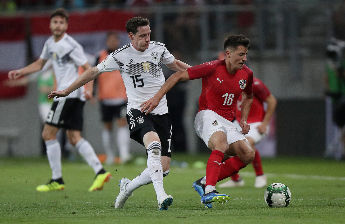 Mesut Ozil capitalised on a dreadful clearance by Austria goalkeeper Joerg Siebenhandl to give Germany an early lead. However, second-half goals from Martin Hinteregger, who met a corner with a stunning far post volley, and Alessandro Schoepf turned the game around.