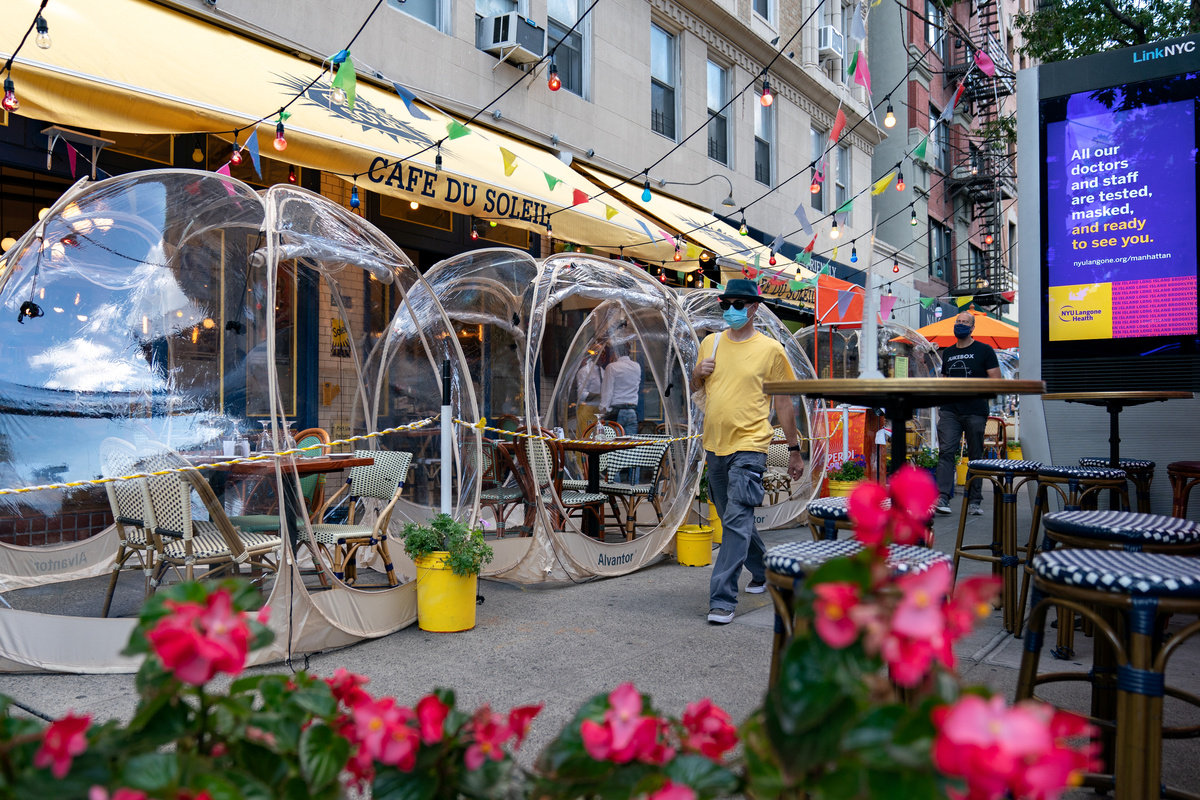 Space bubbles are frothing up business at a New York bistro, offering fresh air in safe capsules on sidewalks for customers on guard against the coronavirus.