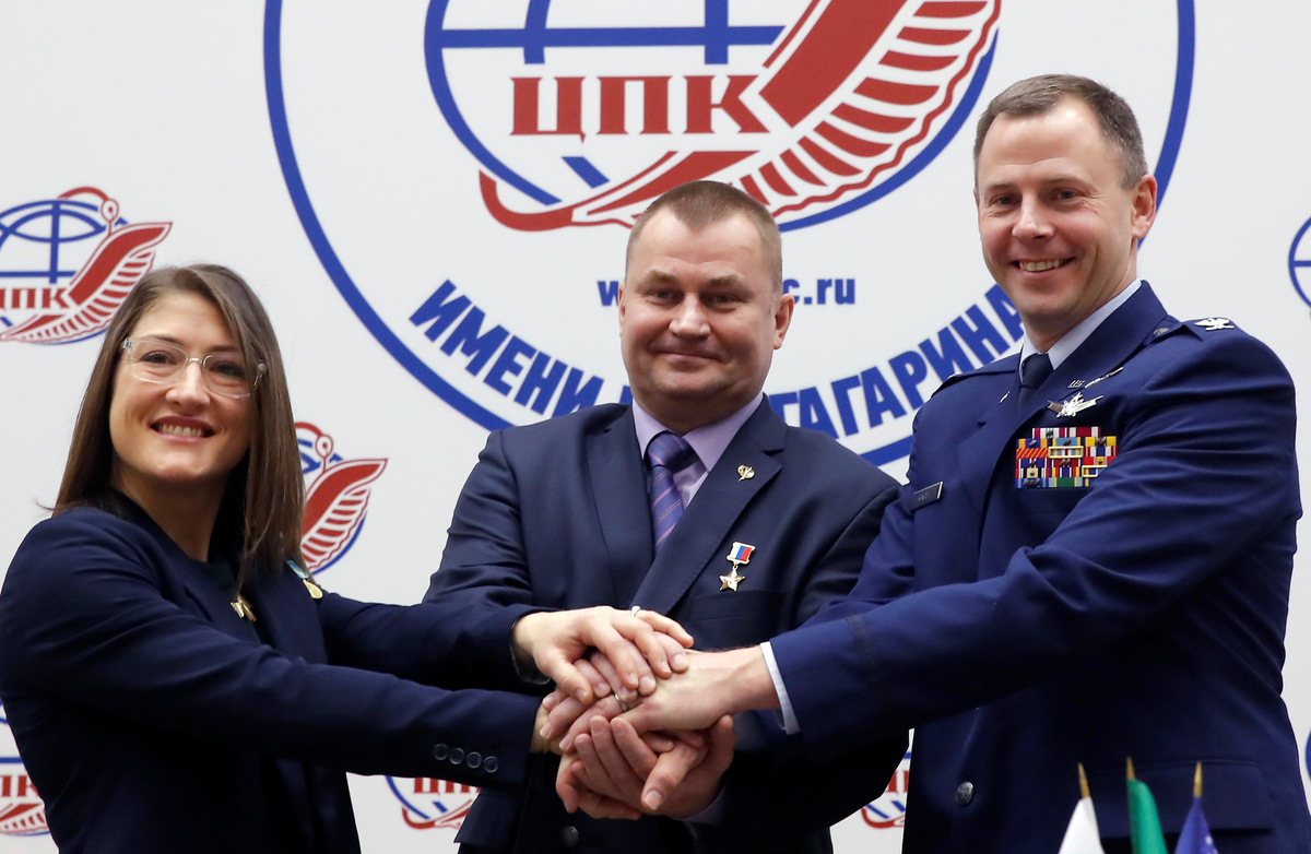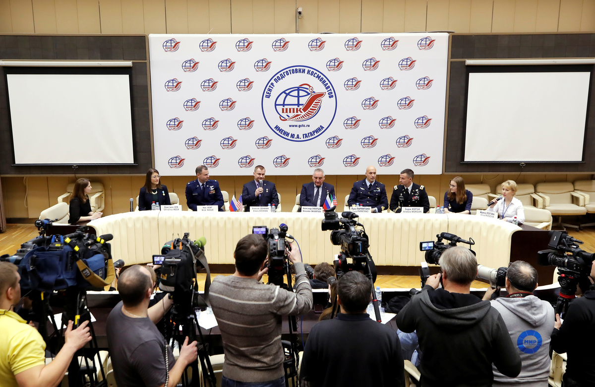 Russian cosmonaut Alexei Ovchinin and U.S. astronaut Nick Hague appeared relaxed in Russia's Star City as they discussed preparations for their first space flight since then.