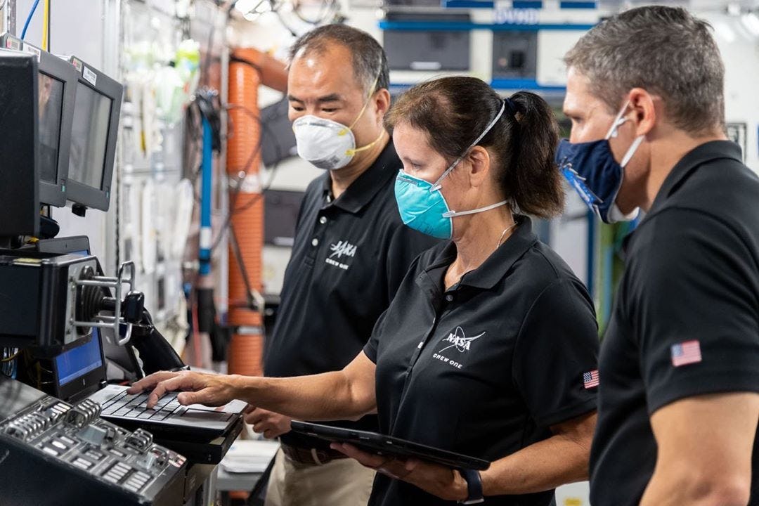 On Thursday, NASA's Johnson Space Center shared four photos on Instagram of the next team set to launch with the Crew Dragon. The images show the four astronauts, set to launch on the "Crew-1" mission, getting to grips with the International Space Station's systems.