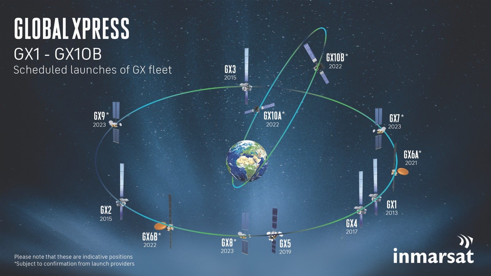 Unknown: Inmarsat-6B — This will launch the GX6B satellite to support Inmarsat’s developing high-speed broadband network. It will operate in a geostationary orbit.