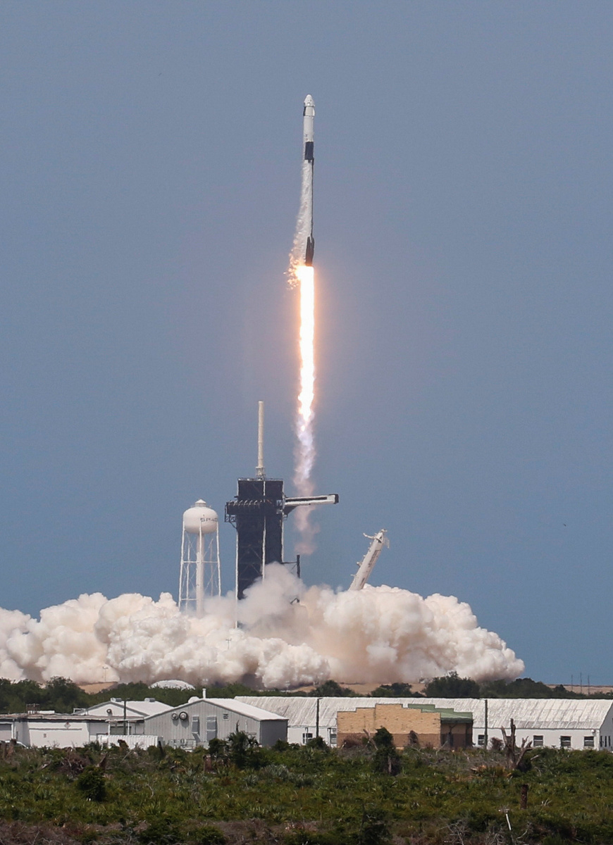 A SpaceX Falcon 9 rocket and Crew Dragon spacecraft carrying NASA astronauts Douglas Hurley and Robert Behnken lifts off during NASA's SpaceX Demo-2 mission to the International Space Station from NASA's Kennedy Space Center in Cape Canaveral, Florida, U.S., May 30, 2020. REUTERS/Steve Nesius