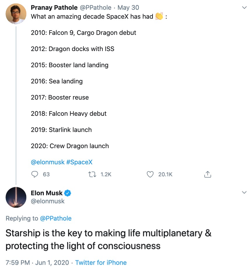 The Inverse analysis – Musk's far-flung visions for the future of humanity may seem only tangentially relevant to SpaceX's daily work, but they have helped to shape the firm's narrative and explain its future direction. Launching Crew Dragon has given the firm experience with launching humans, and developing Starship is set to lead to a versatile yet cost-efficient vehicle.