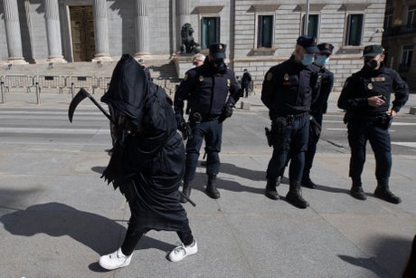 Protesters both in favor and against the new law gathered outside Madrid’s lower house building while lawmakers voted.