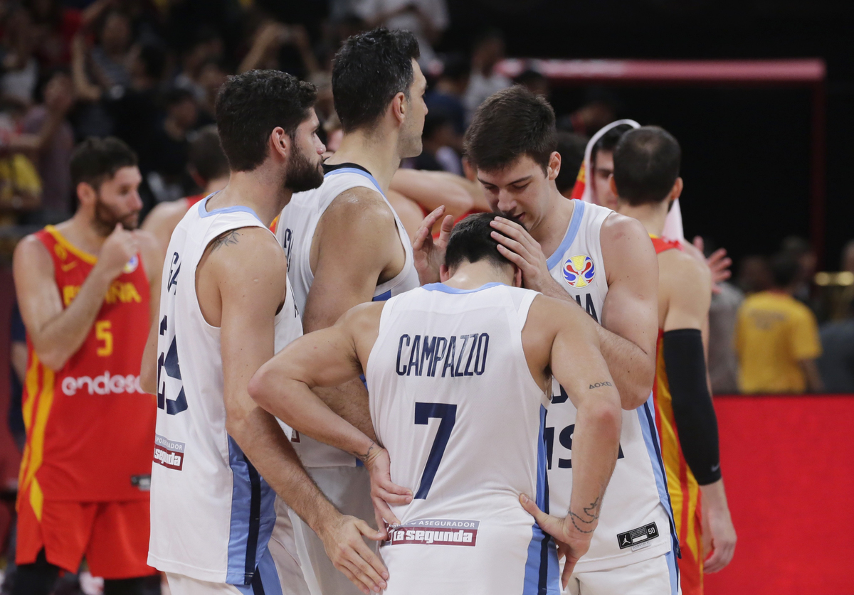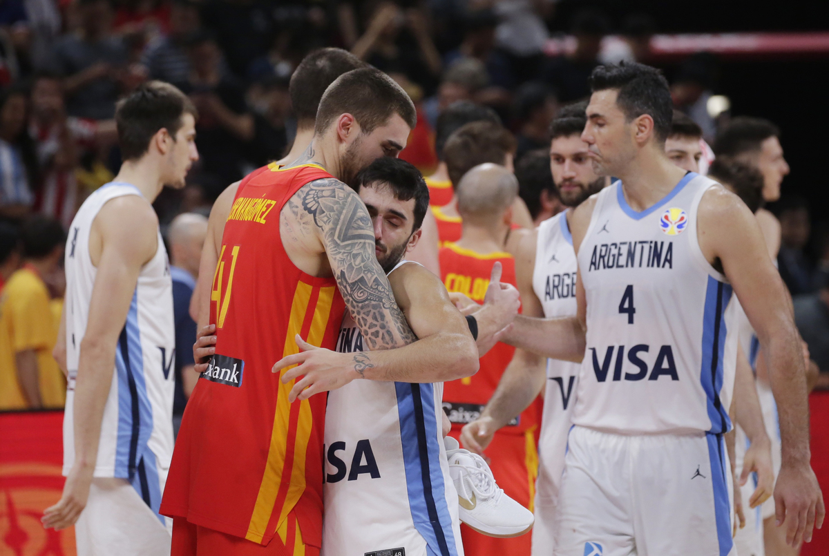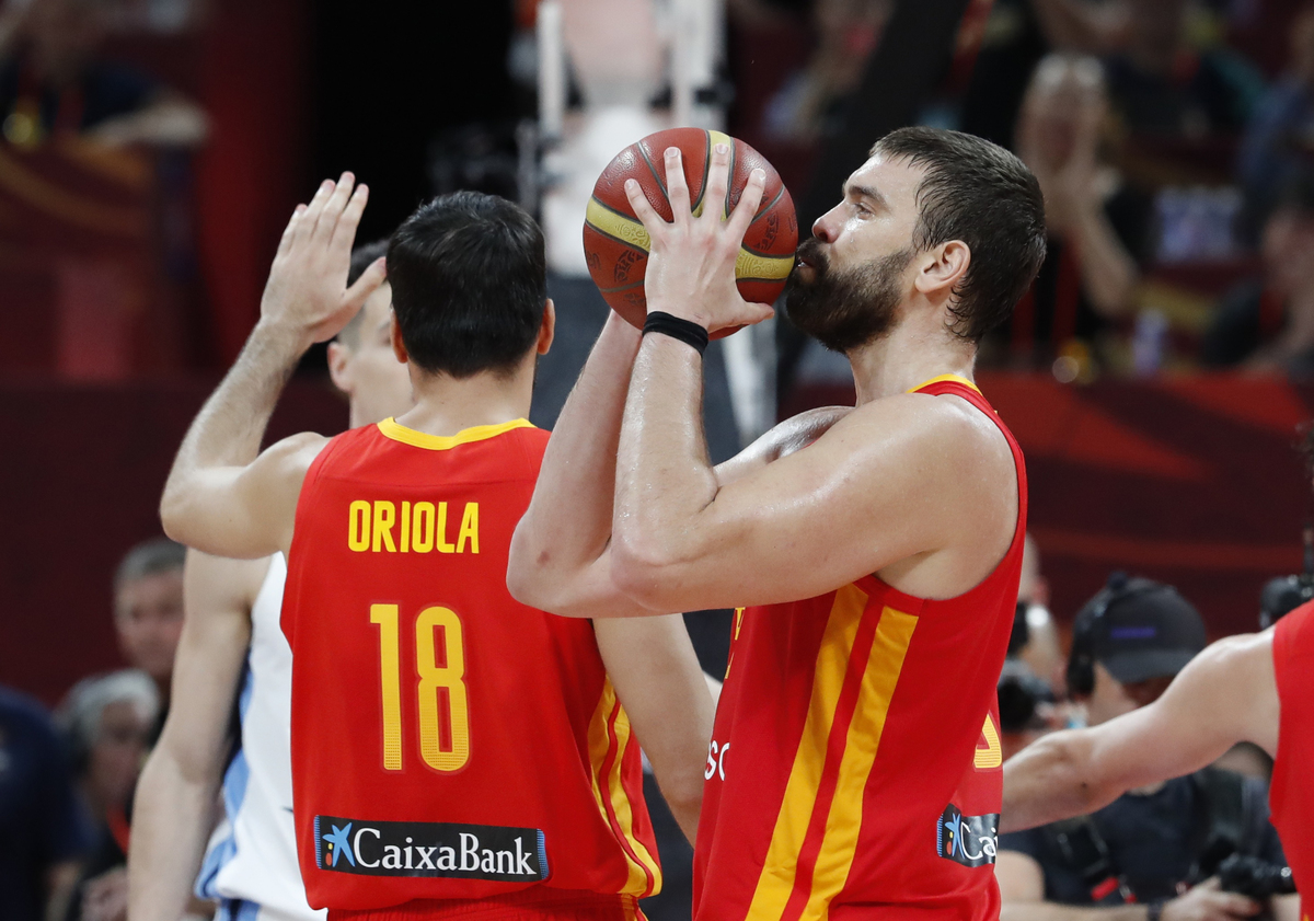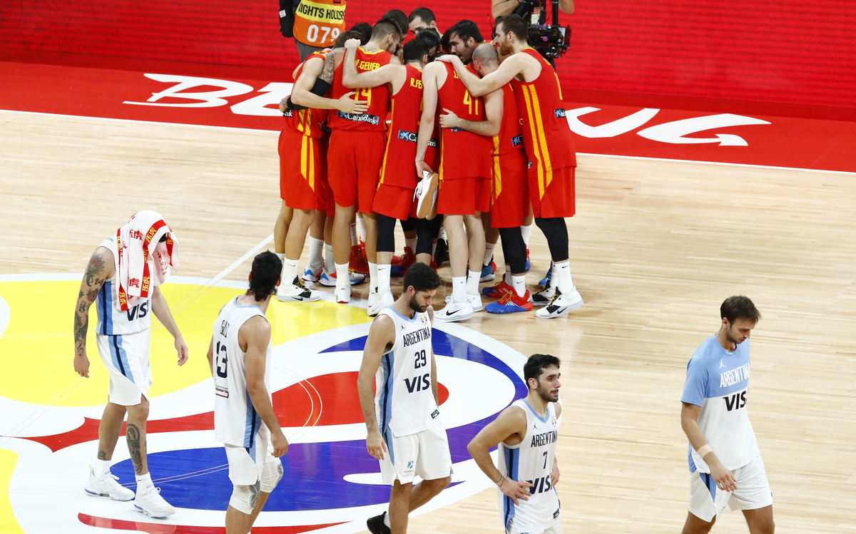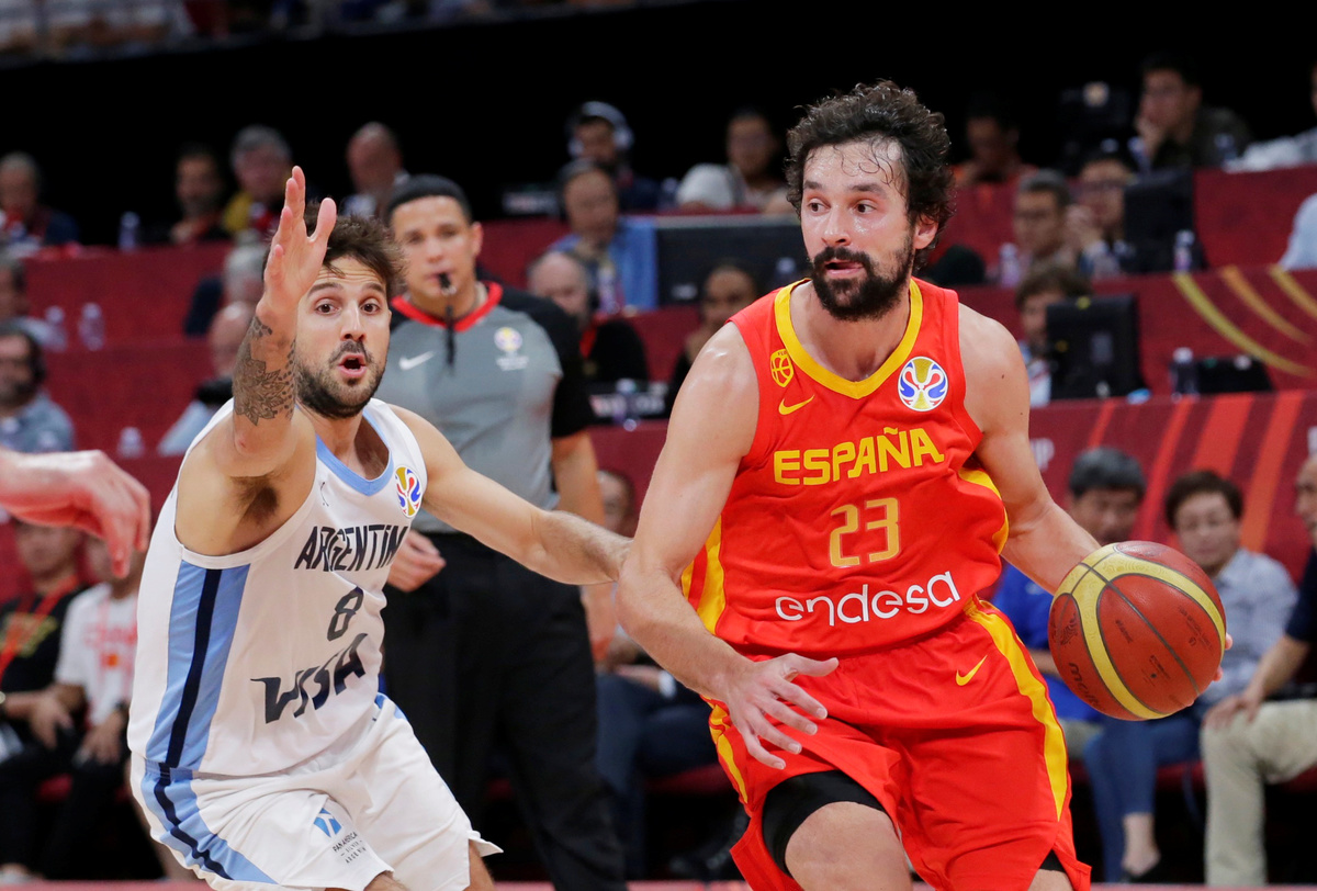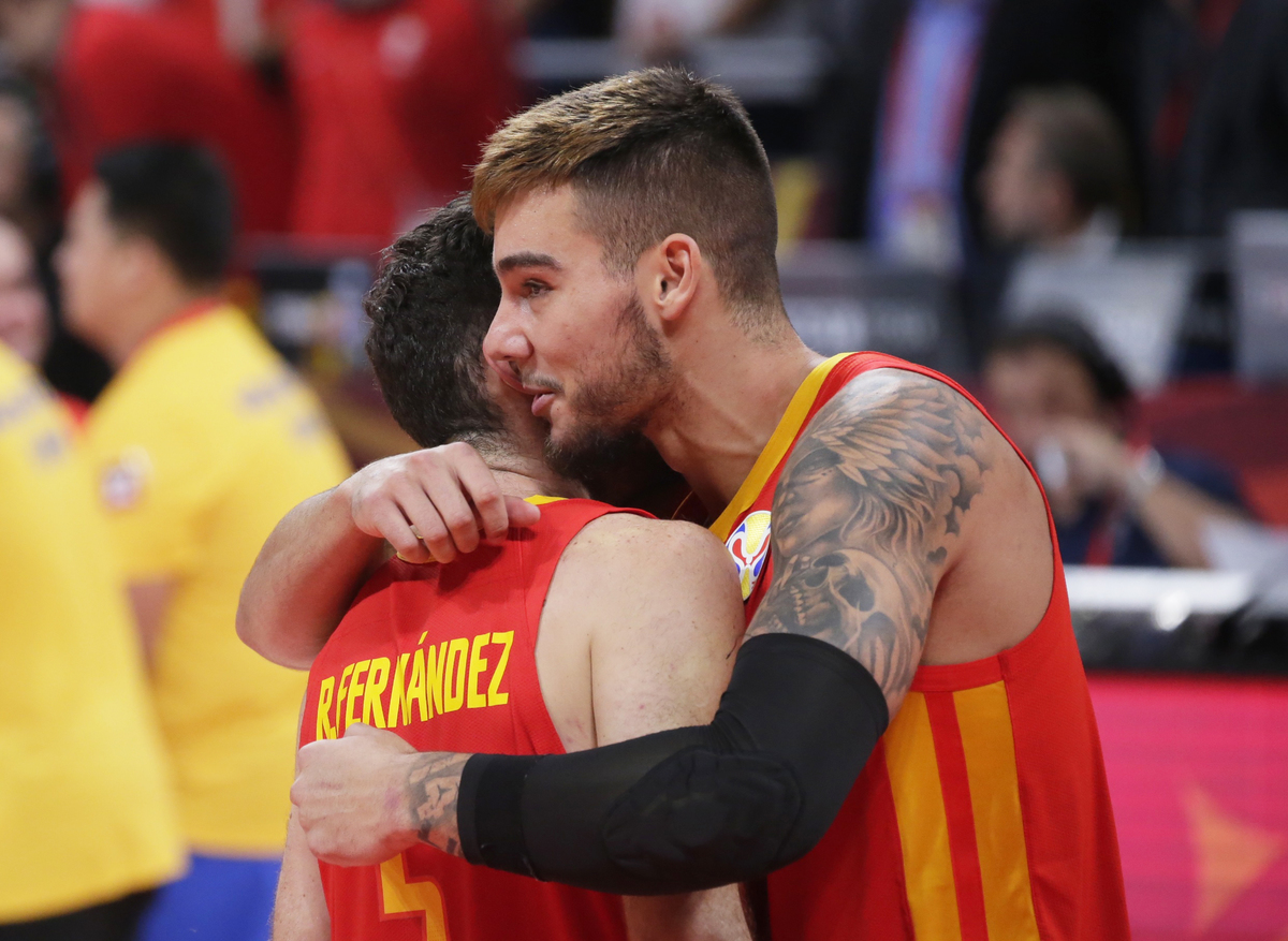Basketball - FIBA World Cup - Final - Argentina v Spain - Wukesong Sport Arena, Beijing, China - September 15, 2019 Spain's Marc Gasol is congratulated by former basketballer Kobe Bryant after winning the FIBA World Cup REUTERS/Jason LeeBasketball - FIBA World Cup - Final - Argentina v Spain - Wukesong Sport Arena, Beijing, China - September 15, 2019 Spain players team huddle to celebrate winning the match REUTERS/Kim Kyung-HoonBasketball - FIBA World Cup - Final - Argentina v Spain - Wukesong Sport Arena, Beijing, China - September 15, 2019 Spain's Marc Gasol and Pierre Oriola celebrate after winning the FIBA World Cup REUTERS/Kim Kyung-HoonBasketball - FIBA World Cup - Final - Argentina v Spain - Wukesong Sport Arena, Beijing, China - September 15, 2019 Spain's Victor Claver celebrates after winning the FIBA World Cup REUTERS/Jason LeeBasketball - FIBA World Cup - Final - Argentina v Spain - Wukesong Sport Arena, Beijing, China - September 15, 2019 Argentina's Maximo Fjellerup consoles Facundo Campazzo after the match REUTERS/Jason LeeBasketball - FIBA World Cup - Final - Argentina v Spain - Wukesong Sport Arena, Beijing, China - September 15, 2019 Argentina's Nicolas Laprovittola in action with Spain's Sergio Llull REUTERS/Jason LeeBasketball - FIBA World Cup - Final - Argentina v Spain - Wukesong Sport Arena, Beijing, China - September 15, 2019 Spain's Willy Hernangomez Geuer and Rudy Fernandez celebrate after winning the FIBA World Cup REUTERS/Jason LeeBasketball - FIBA World Cup - Final - Argentina v Spain - Wukesong Sport Arena, Beijing, China - September 15, 2019 Argentina's Gabriel Deck in action REUTERS/Jason LeeBasketball - FIBA World Cup - Final - Argentina v Spain - Wukesong Sport Arena, Beijing, China - September 15, 2019 Spain's Rudy Fernandez and Willy Hernangomez Geuer cut off the net REUTERS/Jason Lee