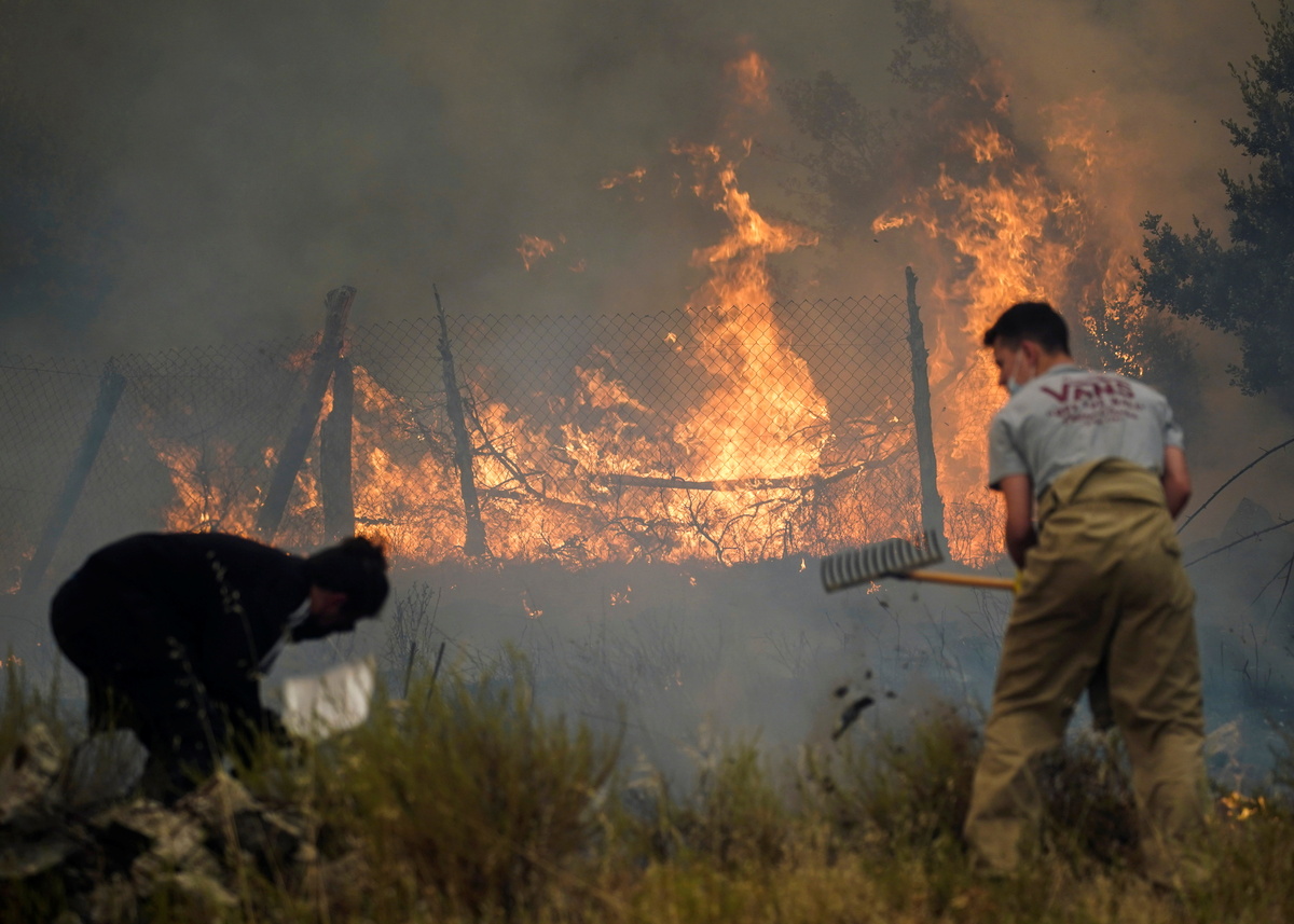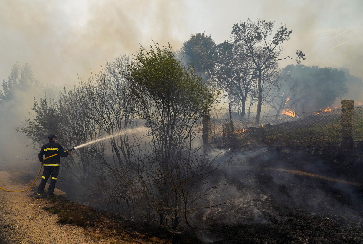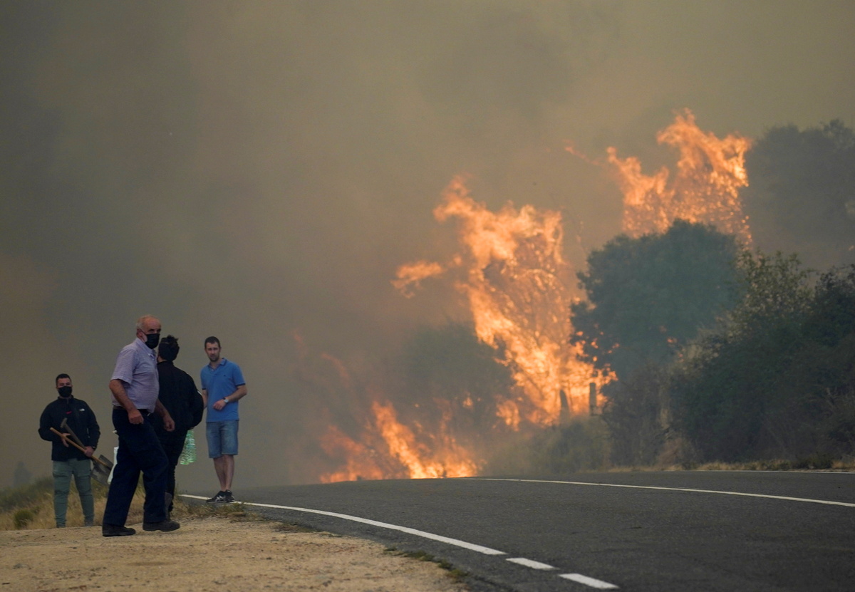 Spanish authorities have evacuated nearly 1,000 people from their homes to protect them from a wildfire that has destroyed at least 12,000 hectares (29,652 acres) of land since Saturday, spurred on by a severe heatwave.