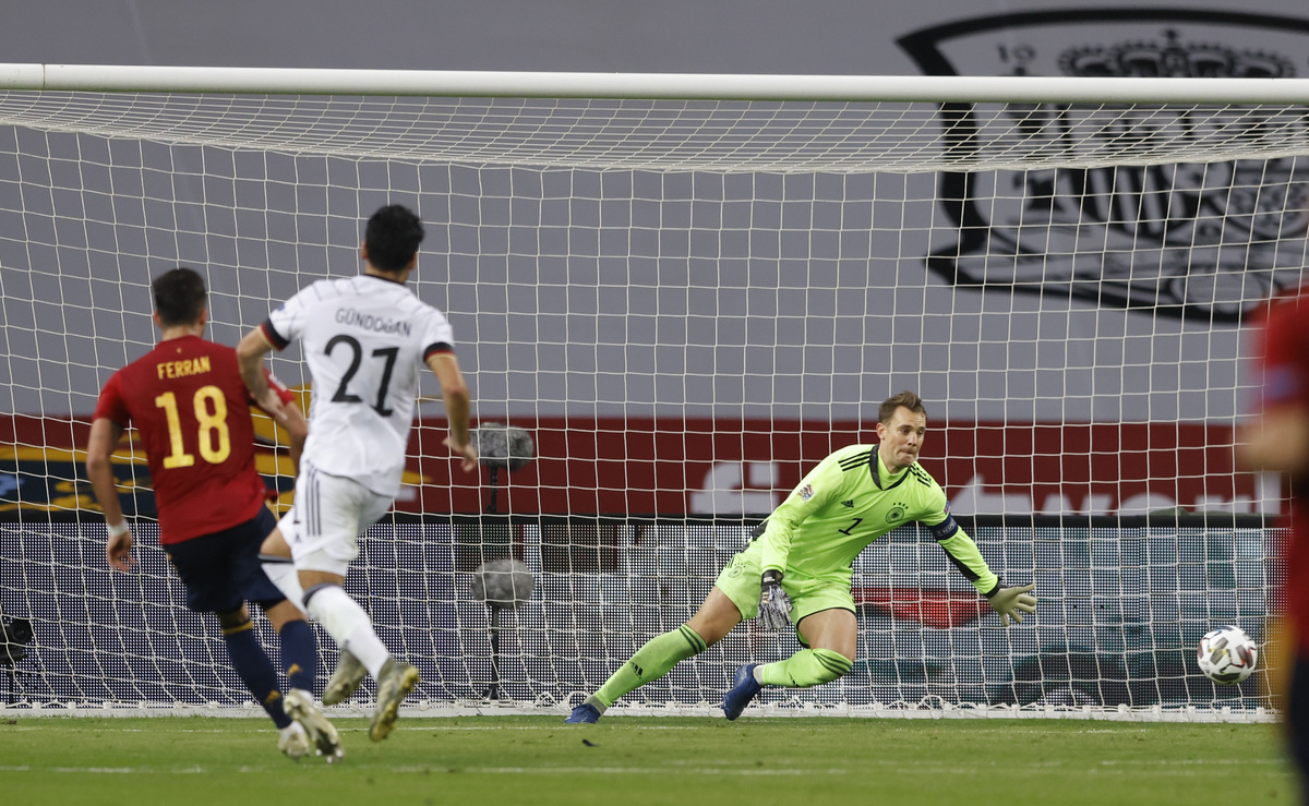 But Ferran showed no mercy, taking a pass from ex-Valencia team mate Jose Gaya to net his second and then receiving a ball from Fabian and beating Neuer from outside the box to become the first Spain player to score a hat-trick against Germany.