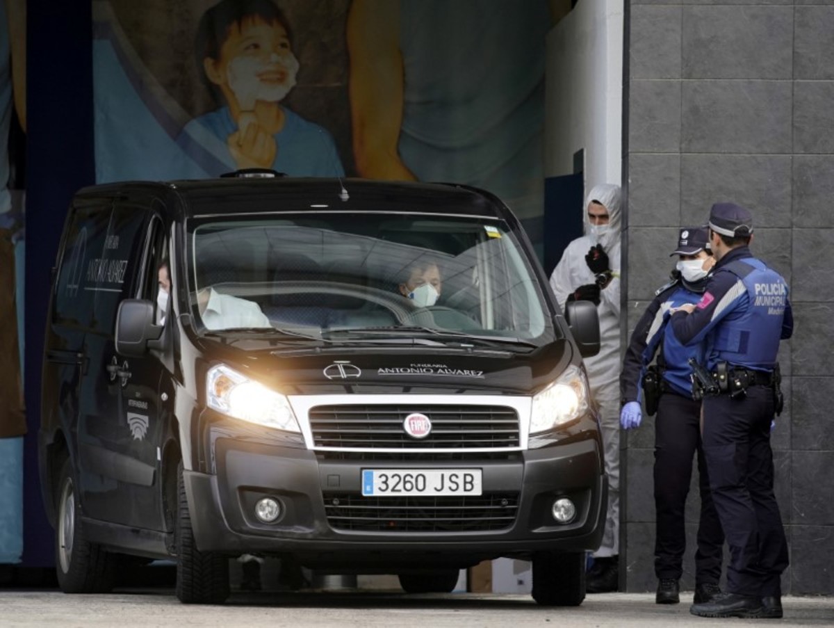 A car of a mortuary, allegedly carrying the corpse of a person who died of coronavirus disease (COVID-19), enter to an ice rink, which will be used as a morgue, during the coronavirus disease (COVID-19) outbreak in Madrid, Spain, March 24, 2020. REUTERS/Juan Medina