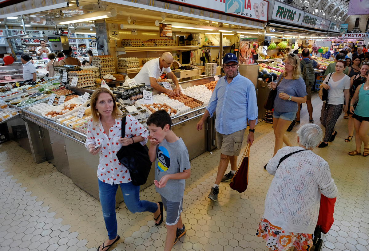 A tourist looks on next to a souvenir shop in the Old Town as the number of tourists in Spain reached new record levels, according to government sources, in Valencia, Spain September 1, 2017. REUTERS/Heino KalisA group of sightseers visits the Old Town as the number of tourists in Spain reached new record levels, according to government sources, in Valencia, Spain September 1, 2017. REUTERS/Heino KalisA tourist takes a picture next to a ham stall at the Central Market in the Old Town as the number of tourists in Spain reached new record levels, according to government sources, Valencia, Spain September 1, 2017. REUTERS/Heino KalisA tour guide talks to sightseers at the Central Market in the Old Town as the number of tourists in Spain reached new record levels, according to government sources, in Valencia, Spain September 1, 2017. REUTERS/Heino KalisA group of sightseers visits the Old Town as the number of tourists in Spain reached new record levels, according to government sources, in Valencia, Spain September 1, 2017. REUTERS/Heino KalisTourists walk at the Central Market in the Old Town as the number of tourists in Spain reached new record levels, according to government sources, in Valencia, Spain September 1, 2017. REUTERS/Heino Kalis