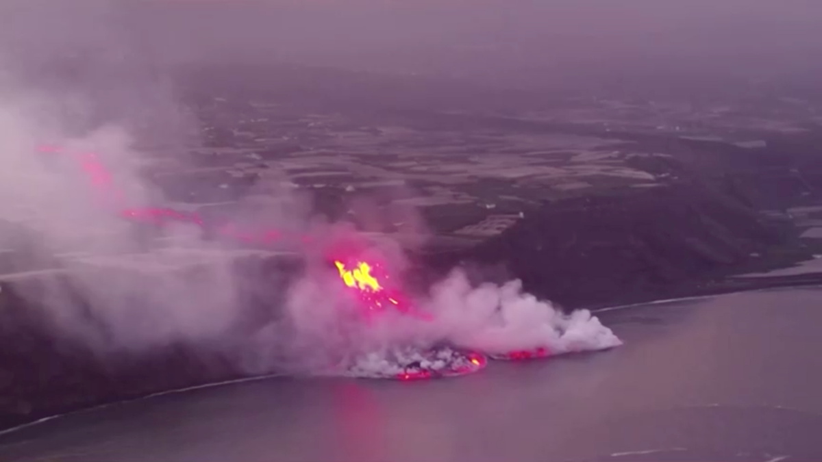Despite fears of toxic gases from the lava reacting with the seawater, authorities said the air remained safe to breathe inland.