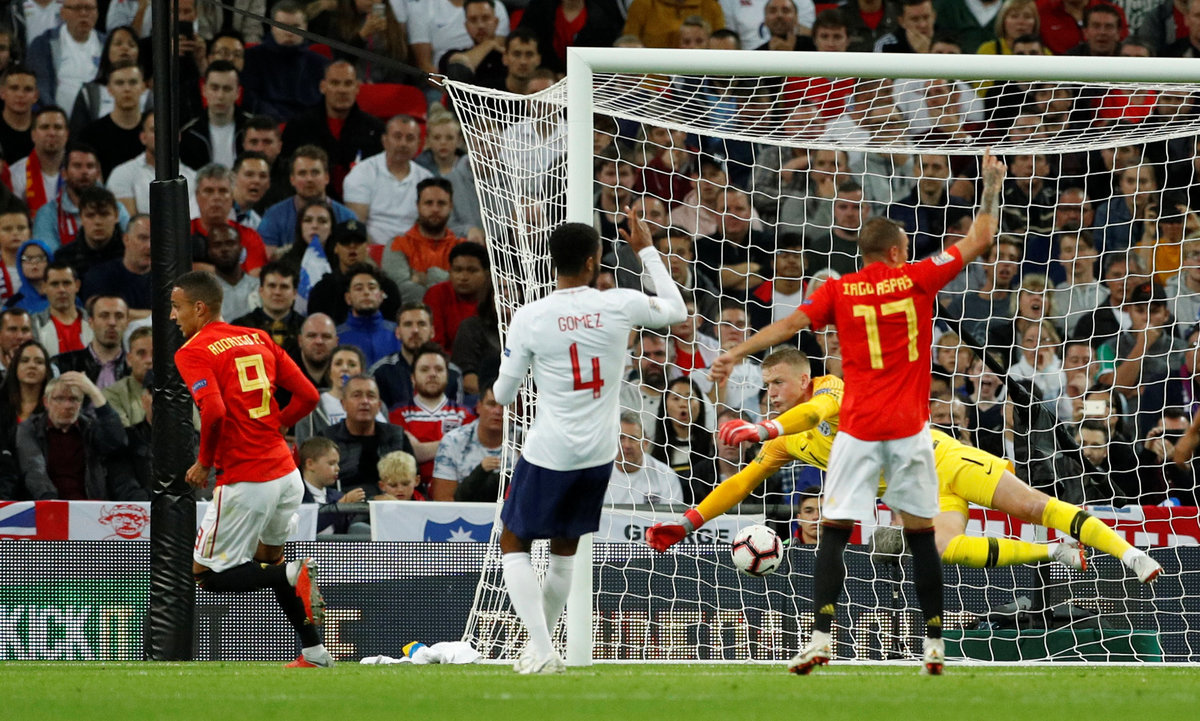 England were chasing shadows and when Kieran Trippier dived in to foul Marcos Alonso in the 32nd minute, the resulting free kick by Alcantara caught the home defence napping as Rodrigo guided the ball home at the near post.