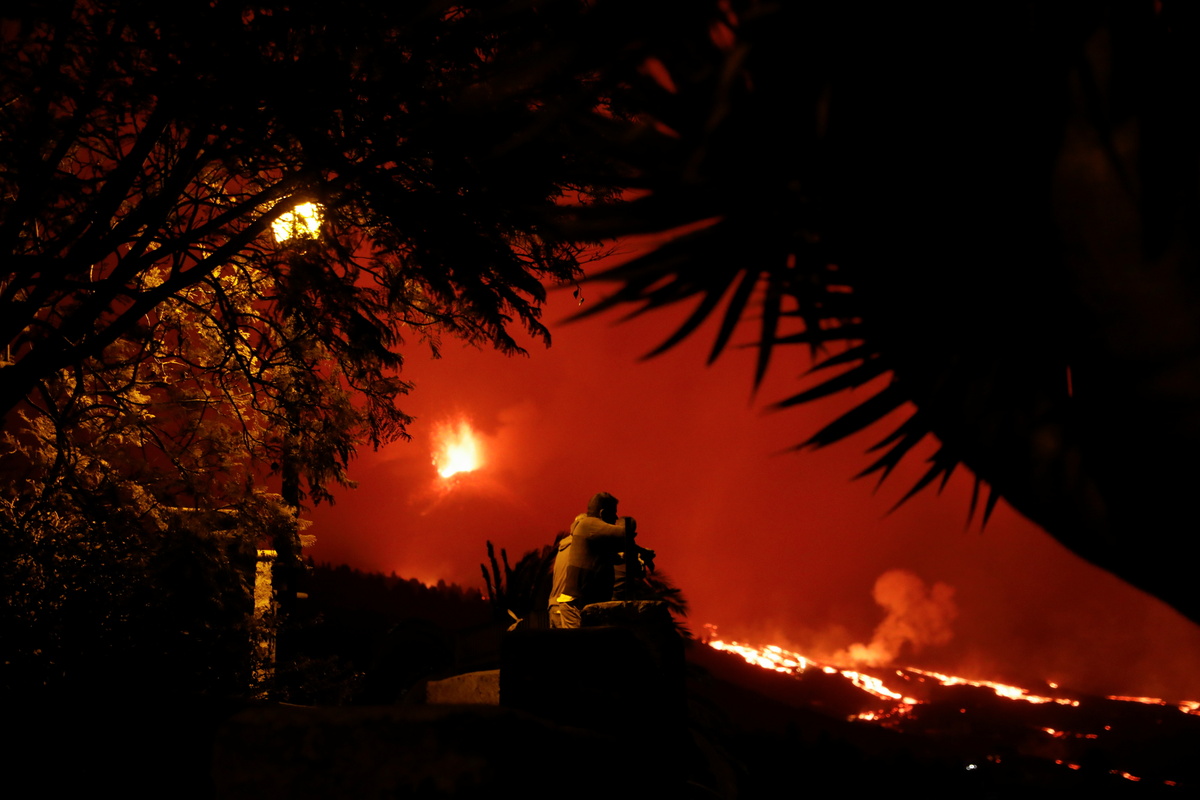 Prime Minister Pedro Sanchez said Spain would speed up aid to the hard-hit agriculture and fishing industries on the island of La Palma, where part of the volcano's cone collapsed on Saturday and red hot lava continued to flow over a month after the eruption began.