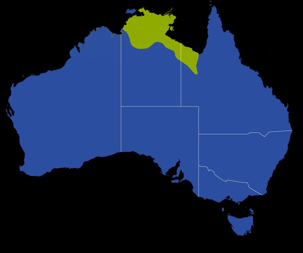 Spalding's rocket frog (Litoria spaldingi) is found from near the NT-WA border to the Gulf of Carpentaria in Queensland.