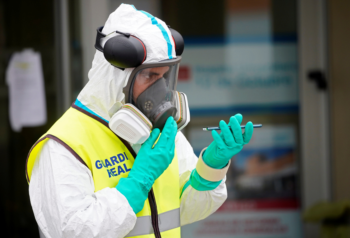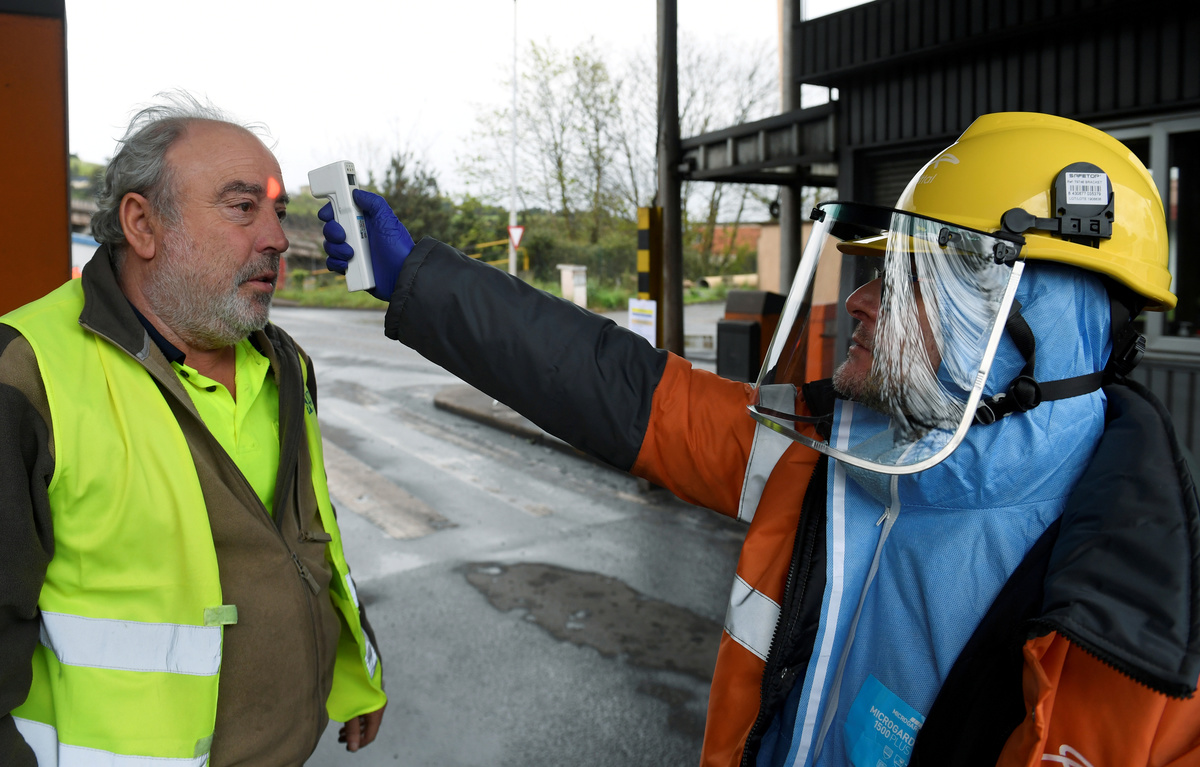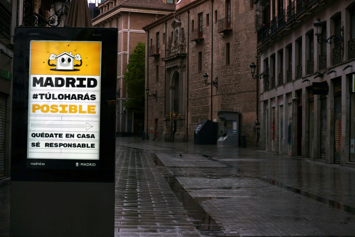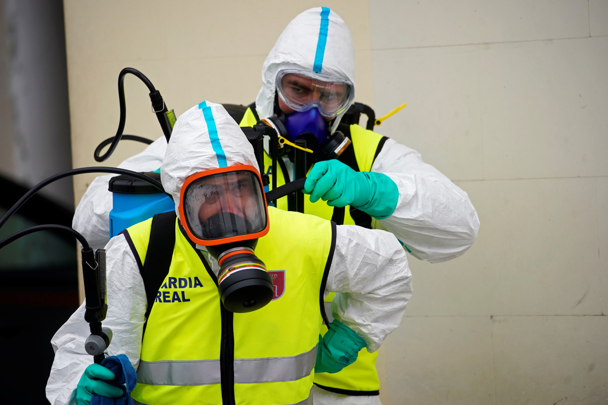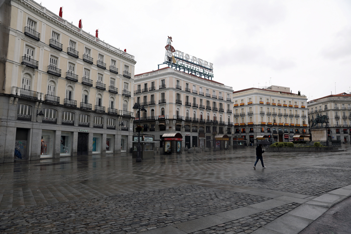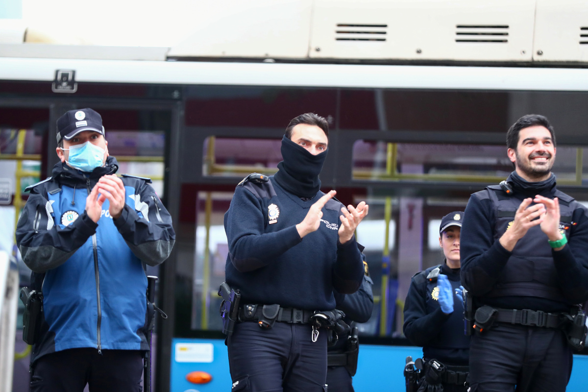People confined in their homes applaud from their balconies in support of healthcare workers, outside Fundacion Jimenez Diaz hospital, amid the coronavirus disease (COVID-19) outbreak, in Madrid, Spain, March 30, 2020. REUTERS/Sergio PerezPolice officers applaud in support of healthcare workers outside Fundacion Jimenez Diaz hospital, amid the coronavirus disease (COVID-19) outbreak, in Madrid, Spain, March 30, 2020. REUTERS/Sergio PerezMedical staff from Fundacion Jimenez Diaz hospital react as neighbours applaud from their balconies in support for healthcare workers, amid the coronavirus disease (COVID-19) outbreak, in Madrid, Spain, March 30, 2020. REUTERS/Sergio PerezA police officer gives a thumbs up as others applaud in support of healthcare workers outside Fundacion Jimenez Diaz hospital, amid the coronavirus disease (COVID-19) outbreak, in Madrid, Spain, March 30, 2020. REUTERS/Sergio PerezPeople exercise at their balconies, amid the coronavirus disease (COVID-19) outbreak, in Ronda, southern Spain, March 30, 2020. REUTERS/Jon NazcaA pharmacy employee walks on an empty street of Ronda, amid the coronavirus disease (COVID-19) outbreak, southern Spain, March 30, 2020. REUTERS/Jon NazcaWorkers of the multinational ArcelorMittal take the temperature of a member of personnel who enter a factory using digital thermometers and thermal cameras to help combat the spread of coronavirus disease (COVID-19) in Gijon Spain, March 30, 2020. REUTERS/Eloy AlonsoWorkers at the multinational ArcelorMittal take the temperature of personnel entering the factory to help combat the spread of the coronavirus disease (COVID-19) in Gijon, Spain March 30, 2020. REUTERS/Eloy AlonsoA person walks in an empty Puerta del Sol square amid the coronavirus disease (COVID-19) outbreak in Madrid, Spain, March 30, 2020. REUTERS/Sergio PerezA sign reading ''Madrid you will make it possible. Stay at home. Be responsible'' is pictured in an empty street amid the coronavirus disease (COVID-19) outbreak in Madrid, Spain, March 30, 2020. The graffiti reads: ''COVID-19: Government weapon''. REUTERS/Sergio PerezPeople keep social distancing as they wait outside a food bank owned by charity entity Caritas amid the coronavirus disease (COVID-19) outbreak in Madrid, Spain, March 30, 2020. REUTERS/Sergio PerezGeneral view of deserted Paseo de la Castellana street amid the coronavirus disease (COVID-19) outbreak in Madrid, Spain, March 30, 2020. REUTERS/Sergio PerezHealthcare workers wearing protective face masks push a patient in a wheelchair at the emergency unit at 12 de Octubre Hospital, amid the coronavirus disease (COVID-19) outbreak in Madrid, Spain March 30, 2020. REUTERS/Juan MedinaPeople poses to practice social distancing with a ruler, amid the coronavirus disease (COVID-19) outbreak, in Ronda, southern Spain, March 30, 2020. REUTERS/Jon NazcaA medical worker wears a protective face mask outside the emergency unit at 12 de Octubre Hospital, amid the coronavirus disease (COVID-19) outbreak in Madrid, Spain March 30, 2020. REUTERS/Juan MedinaA member of the Royal Guard wearing protective gear sanitises a dumpster outside the emergency unit at 12 de Octubre Hospital, amid the coronavirus disease (COVID-19) outbreak in Madrid, Spain March 30, 2020. REUTERS/Juan MedinaMembers of the Royal Guard wear protective face masks outside the emergency unit at 12 de Octubre Hospital, amid the coronavirus disease (COVID-19) outbreak in Madrid, Spain March 30, 2020. REUTERS/Juan MedinaMembers of the Royal Guard wearing protective face masks gather outside the emergency unit at 12 de Octubre Hospital, amid the coronavirus disease (COVID-19) outbreak in Madrid, Spain March 30, 2020. REUTERS/Juan MedinaA member of the Royal Guard wears protective gear outside the emergency unit at 12 de Octubre Hospital, amid the coronavirus disease (COVID-19) outbreak in Madrid, Spain March 30, 2020. REUTERS/Juan MedinaMembers of the Royal Guard wear protective face masks outside the emergency unit at 12 de Octubre Hospital, amid the coronavirus disease (COVID-19) outbreak in Madrid, Spain March 30, 2020. REUTERS/Juan MedinaHealthcare workers wearing protective face masks bring oxygen bottles to the emergency unit at 12 de Octubre Hospital, amid the coronavirus disease (COVID-19) outbreak in Madrid, Spain March 30, 2020. REUTERS/Juan Medina