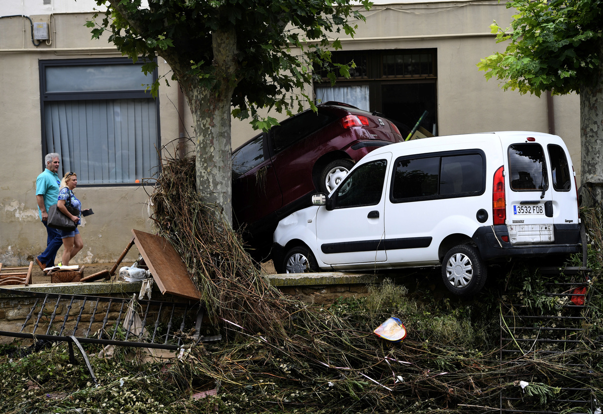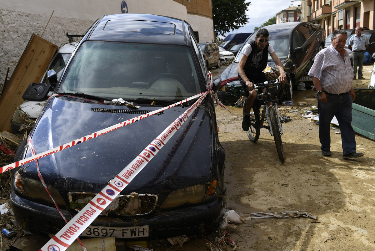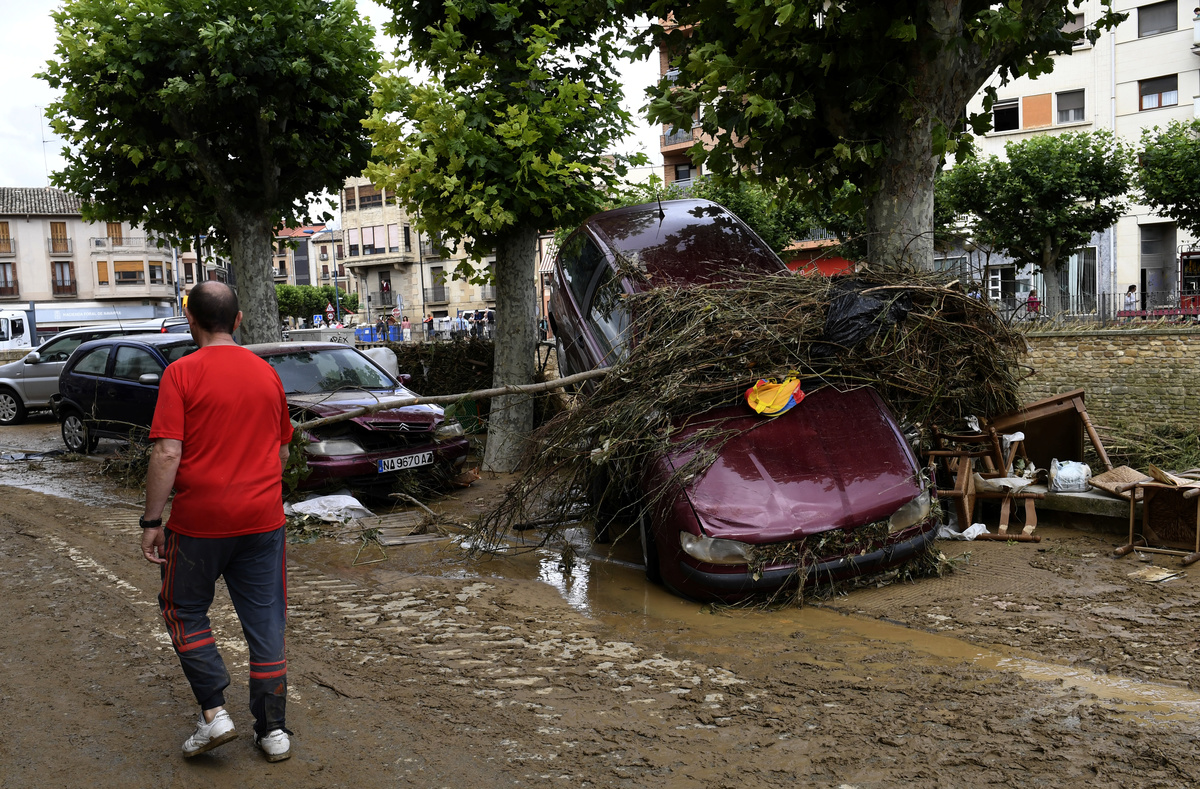 Documents and belongings are seen in the mud after heavy rainfall in Tafalla, near Pamplona, northen Spain, July 9, 2019. REUTERS/Jon NazcaDocuments and belongings are seen in the mud after heavy rainfall in Tafalla, near Pamplona, northen Spain, July 9, 2019. REUTERS/Jon Nazca A man cleans debris after heavy rainfall in Tafalla, Spain, July 9, 2019. REUTERS/Susana Vera A man cleans debris after heavy rainfall in Tafalla, Spain, July 9, 2019. REUTERS/Susana VeraPeople do clean up work after heavy rainfall in Tafalla, Spain, July 9, 2019. REUTERS/Susana VeraCars are seen in the river bank after heavy rainfall in Tafalla, Spain, July 9, 2019. REUTERS/Susana VeraCars are seen in the river bank after heavy rainfall in Tafalla, Spain, July 9, 2019. REUTERS/Susana VeraLocals walk past cars damaged after the river Cidacos burst its banks, causing floods, following hours of intense rain late Monday, in Tafalla, Spain, July 9, 2019. REUTERS/Eloy AlonsoA woman speaks on the phone next to damaged cars after heavy rainfall in Tafalla, Spain, July 9, 2019. REUTERS/Susana Vera A car lays on the riverbank after heavy rainfall in Tafalla, Spain, July 9, 2019. REUTERS/Susana VeraA local walks past cars damaged after the river Cidacos burst its banks, causing floods, following hours of intense rain late Monday, in Tafalla, Spain, July 9, 2019. REUTERS/Eloy AlonsoA woman reacts in front of debris after the river Cidacos burst its banks causing floods, following hours of intense rain late Monday, in Tafalla, Spain, July 9, 2019. REUTERS/Eloy AlonsoGeneral view of a collapsed road after heavy rainfall in Tafalla, Spain, July 9, 2019. REUTERS/Susana VeraPeople clean debris out of a restaurant after heavy rainfall in Tafalla, Spain, July 9, 2019. REUTERS/Susana VeraA local walks past cars damaged after the river Cidacos burst its banks, causing floods, following hours of intense rain late Monday, in Tafalla, Spain, July 9, 2019. REUTERS/Eloy AlonsoDebris are seen on the roof of a house after heavy rainfall in Tafalla, Spain, July 9, 2019. REUTERS/Susana VeraA local cleans up alongside cars damaged after the river Cidacos burst its banks, causing floods, following hours of intense rain late Monday, in Tafalla, Spain, July 9, 2019. REUTERS/Eloy AlonsoGeneral view of a collapsed road after heavy rainfall in Tafalla, Spain, July 9, 2019. REUTERS/Susana VeraA woman cleans out debris after heavy rainfall in Tafalla, Spain, July 9, 2019. REUTERS/Susana VeraDebris are seen on the roof of a house after heavy rainfall in Tafalla, Spain, July 9, 2019. REUTERS/Susana VeraA man cleans out debris after heavy rainfall in Tafalla, Spain, July 9, 2019. REUTERS/Susana VeraA man walks a dog past a collapsed road after heavy rainfall in Tafalla, Spain, July 9, 2019. REUTERS/Susana VeraGeneral view of a flooded area after heavy rainfall in Tafalla, Spain, July 9, 2019. REUTERS/Susana VeraA local walks past cars damaged after the river Cidacos burst its banks, causing floods, following hours of intense rain late Monday, in Tafalla, Spain, July 9, 2019. REUTERS/Eloy AlonsoA local walks past cars damaged after the river Cidacos burst its banks, causing floods, following hours of intense rain late Monday, in Tafalla, Spain, July 9, 2019. REUTERS/Eloy AlonsoA local walks past cars damaged after the river Cidacos burst its banks, causing floods, following hours of intense rain late Monday, in Tafalla, Spain, July 9, 2019. REUTERS/Eloy AlonsoA local walks past cars damaged after the river Cidacos burst its banks, causing floods, following hours of intense rain late Monday, in Tafalla, Spain, July 9, 2019. REUTERS/Eloy AlonsoA man rides a bicycle past a flooded area after heavy rainfall in Tafalla, Spain, July 9, 2019. REUTERS/Susana Vera