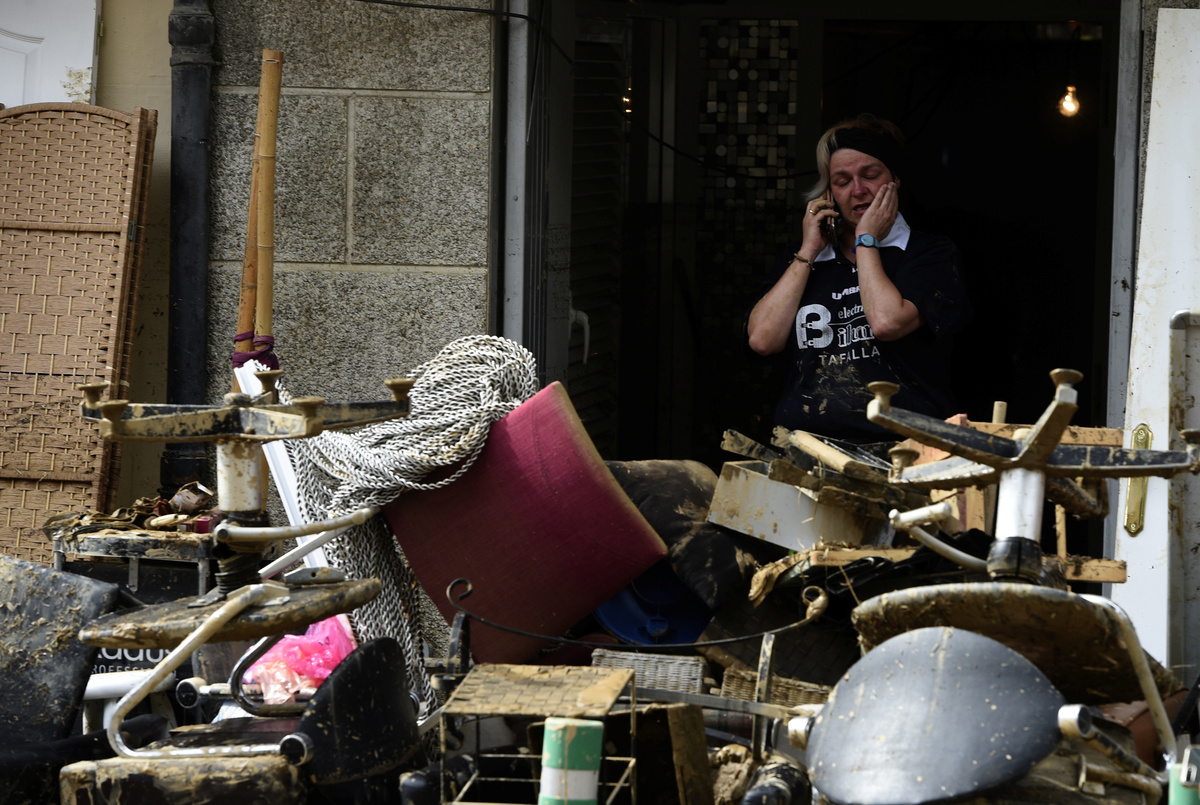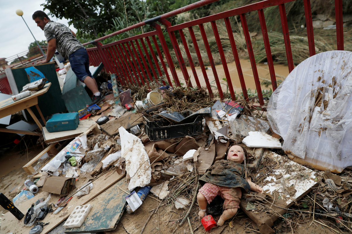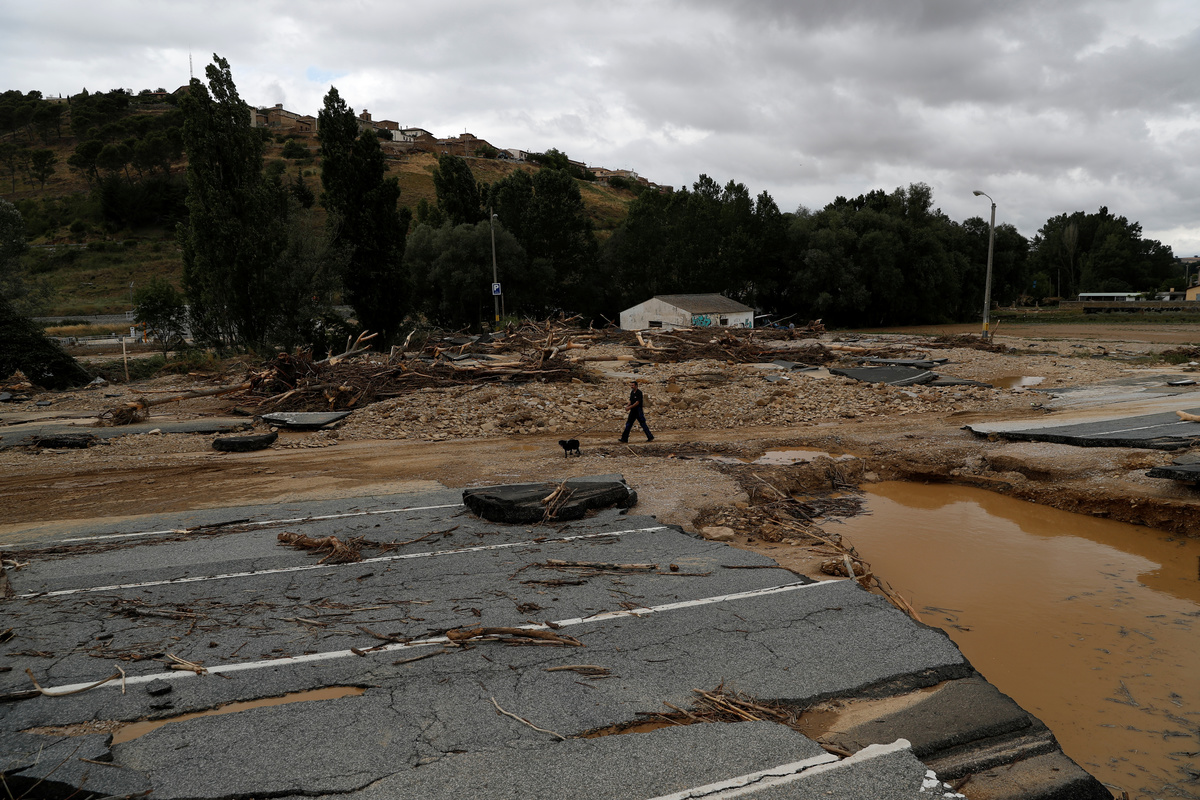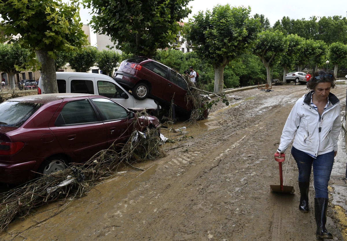 Documents and belongings are seen in the mud after heavy rainfall in Tafalla, near Pamplona, northen Spain, July 9, 2019. REUTERS/Jon NazcaDocuments and belongings are seen in the mud after heavy rainfall in Tafalla, near Pamplona, northen Spain, July 9, 2019. REUTERS/Jon Nazca A man cleans debris after heavy rainfall in Tafalla, Spain, July 9, 2019. REUTERS/Susana Vera A man cleans debris after heavy rainfall in Tafalla, Spain, July 9, 2019. REUTERS/Susana VeraPeople do clean up work after heavy rainfall in Tafalla, Spain, July 9, 2019. REUTERS/Susana VeraCars are seen in the river bank after heavy rainfall in Tafalla, Spain, July 9, 2019. REUTERS/Susana VeraCars are seen in the river bank after heavy rainfall in Tafalla, Spain, July 9, 2019. REUTERS/Susana VeraLocals walk past cars damaged after the river Cidacos burst its banks, causing floods, following hours of intense rain late Monday, in Tafalla, Spain, July 9, 2019. REUTERS/Eloy AlonsoA woman speaks on the phone next to damaged cars after heavy rainfall in Tafalla, Spain, July 9, 2019. REUTERS/Susana Vera A car lays on the riverbank after heavy rainfall in Tafalla, Spain, July 9, 2019. REUTERS/Susana VeraA local walks past cars damaged after the river Cidacos burst its banks, causing floods, following hours of intense rain late Monday, in Tafalla, Spain, July 9, 2019. REUTERS/Eloy AlonsoA woman reacts in front of debris after the river Cidacos burst its banks causing floods, following hours of intense rain late Monday, in Tafalla, Spain, July 9, 2019. REUTERS/Eloy AlonsoGeneral view of a collapsed road after heavy rainfall in Tafalla, Spain, July 9, 2019. REUTERS/Susana VeraPeople clean debris out of a restaurant after heavy rainfall in Tafalla, Spain, July 9, 2019. REUTERS/Susana VeraA local walks past cars damaged after the river Cidacos burst its banks, causing floods, following hours of intense rain late Monday, in Tafalla, Spain, July 9, 2019. REUTERS/Eloy AlonsoDebris are seen on the roof of a house after heavy rainfall in Tafalla, Spain, July 9, 2019. REUTERS/Susana VeraA local cleans up alongside cars damaged after the river Cidacos burst its banks, causing floods, following hours of intense rain late Monday, in Tafalla, Spain, July 9, 2019. REUTERS/Eloy AlonsoGeneral view of a collapsed road after heavy rainfall in Tafalla, Spain, July 9, 2019. REUTERS/Susana VeraA woman cleans out debris after heavy rainfall in Tafalla, Spain, July 9, 2019. REUTERS/Susana VeraDebris are seen on the roof of a house after heavy rainfall in Tafalla, Spain, July 9, 2019. REUTERS/Susana VeraA man cleans out debris after heavy rainfall in Tafalla, Spain, July 9, 2019. REUTERS/Susana VeraA man walks a dog past a collapsed road after heavy rainfall in Tafalla, Spain, July 9, 2019. REUTERS/Susana VeraGeneral view of a flooded area after heavy rainfall in Tafalla, Spain, July 9, 2019. REUTERS/Susana VeraA local walks past cars damaged after the river Cidacos burst its banks, causing floods, following hours of intense rain late Monday, in Tafalla, Spain, July 9, 2019. REUTERS/Eloy AlonsoA local walks past cars damaged after the river Cidacos burst its banks, causing floods, following hours of intense rain late Monday, in Tafalla, Spain, July 9, 2019. REUTERS/Eloy AlonsoA local walks past cars damaged after the river Cidacos burst its banks, causing floods, following hours of intense rain late Monday, in Tafalla, Spain, July 9, 2019. REUTERS/Eloy AlonsoA local walks past cars damaged after the river Cidacos burst its banks, causing floods, following hours of intense rain late Monday, in Tafalla, Spain, July 9, 2019. REUTERS/Eloy AlonsoA man rides a bicycle past a flooded area after heavy rainfall in Tafalla, Spain, July 9, 2019. REUTERS/Susana Vera