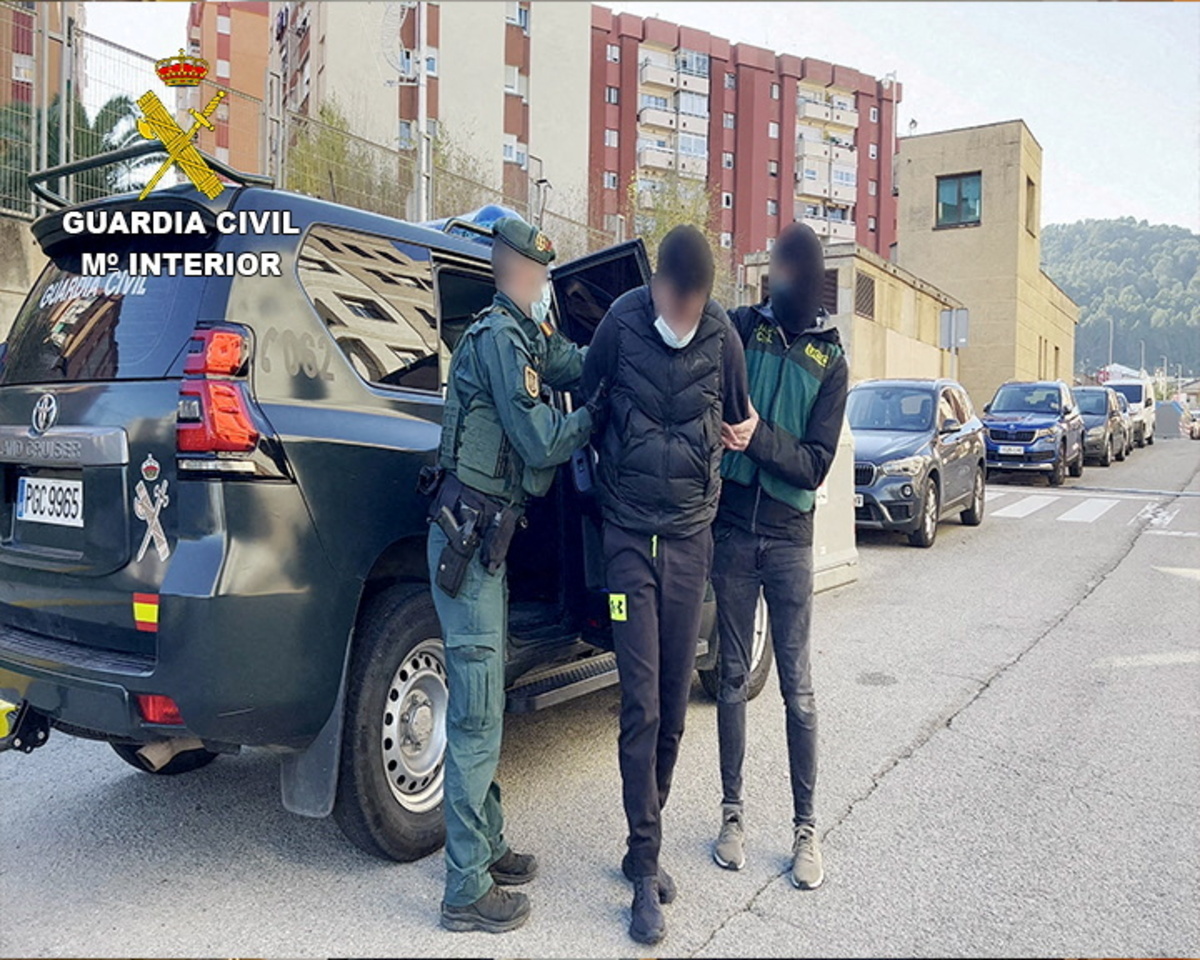 Guardia Civil footage showed heavily armed officers breaking down doors in Barcelona and searching a luxury riverside apartment alleged to be connected to the network.