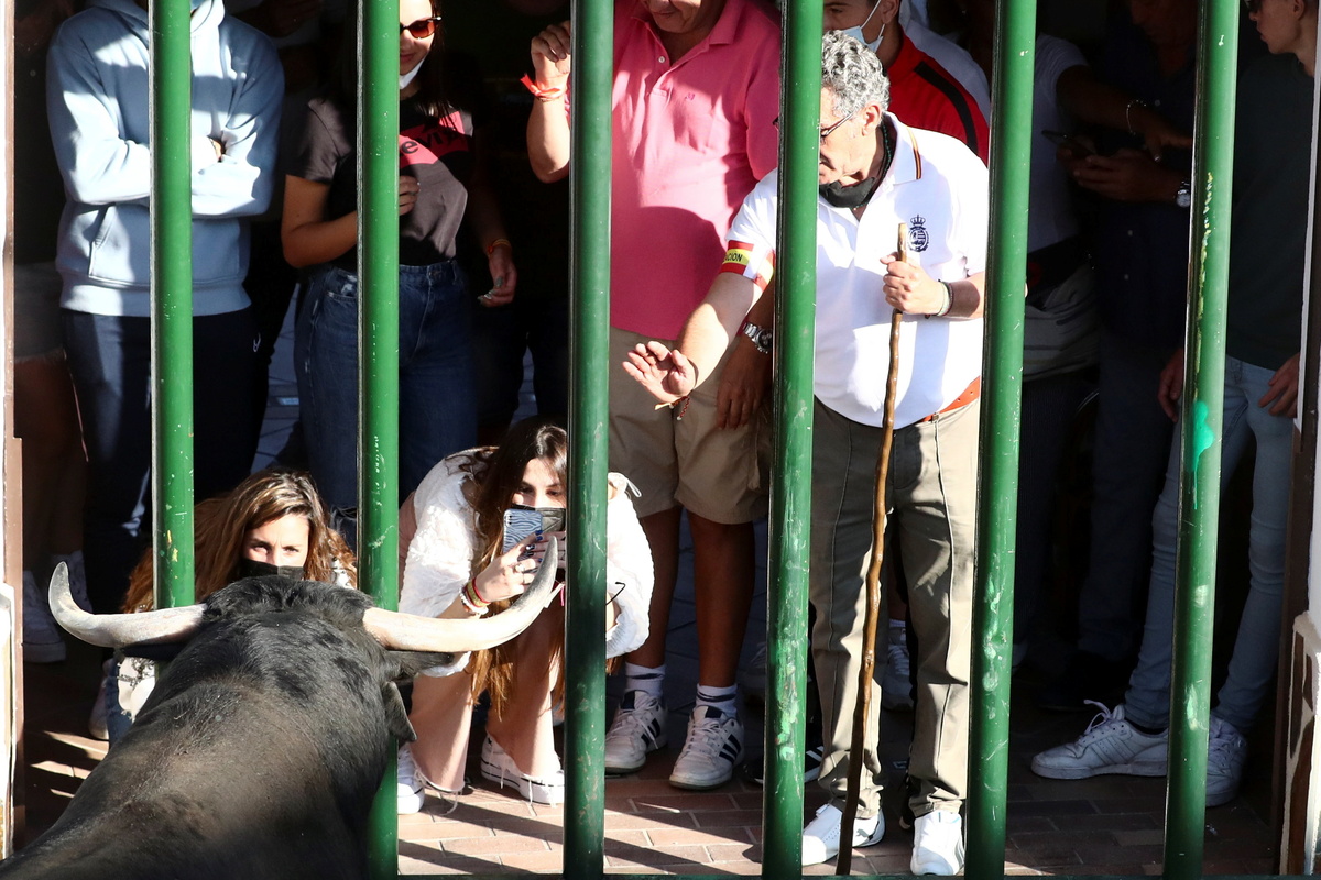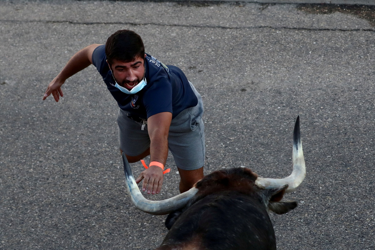 Ten bulls charged through the streets of Villaseca de la Sagra on Sunday in pursuit of hundreds of runners as the first bull running fiesta was held in Spain since the start of the COVID-19 pandemic.