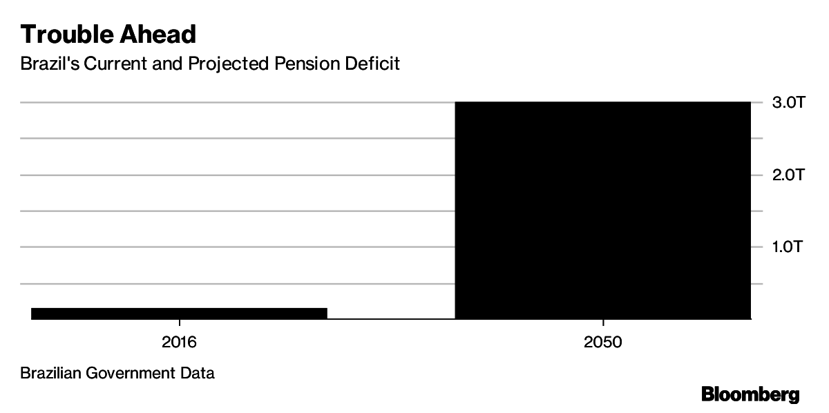 Brazil’s pension system is unsustainable. The government currently spends around 13 percent of GDP on pensions, according to official figures, but that number is expected to shoot up. The active labor force is forecast to shrink by 6.7 percent by 2060 while the number of retirees grows 263 percent. Without a substantial pension reform much of Temer’s efforts to rein in spending to date will have been in vain.