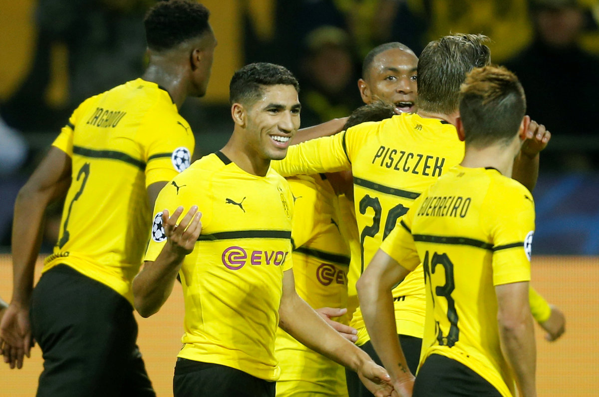 DORTMUND, Germany (Reuters) - Borussia Dortmund cruised past Atletico Madrid 4-0 in their Champions League match on Wednesday with two goals from substitute Raphael Guerreiro helpng propel them to the top of Group A.