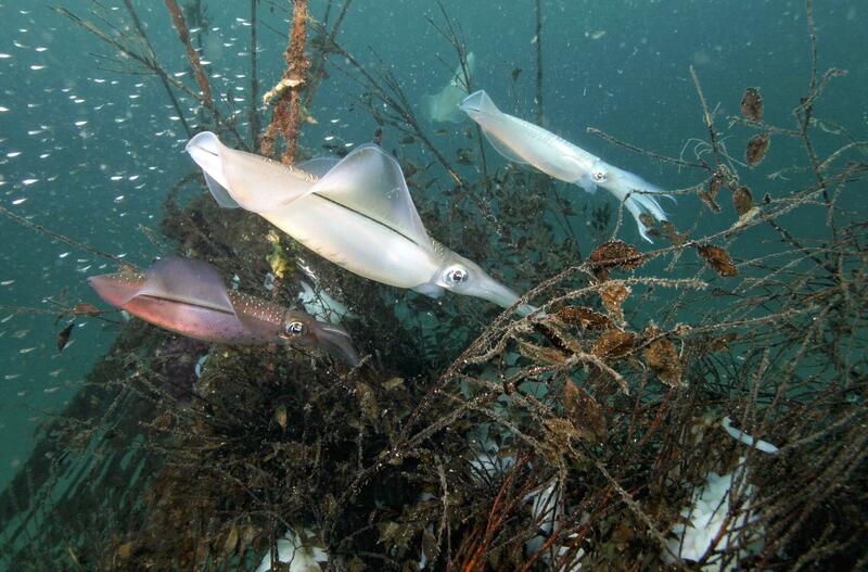 Spawning season for bigfin reef squid has begun off the coast of Kawana in Ito, Shizuoka Prefecture.