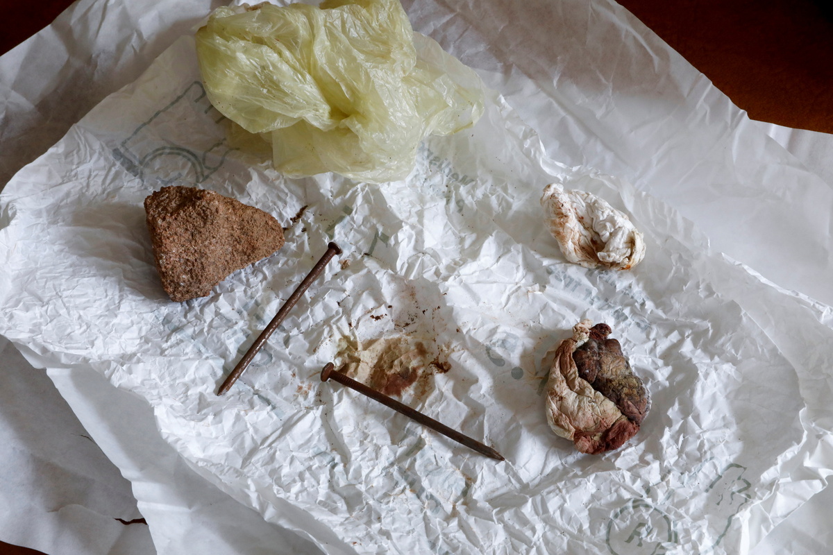 Doctors showed Reuters the bloodstained stone and two 3-inch nails they said they had removed from her body.