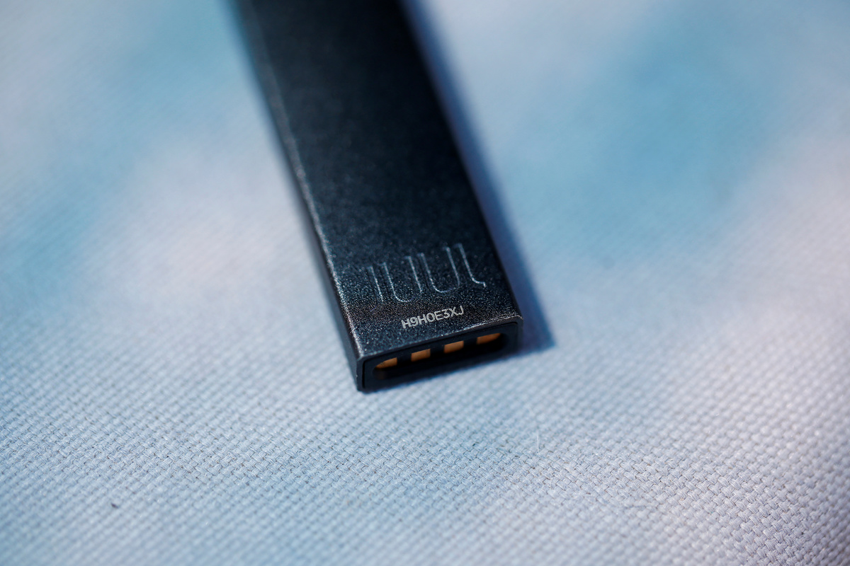 E-cigarettes vaporize a liquid that contains nicotine, the addictive stimulant that gives smokers a rush. The Juul design mimics a flash drive - with plug-in cartridges of concentrated nicotine juice. It is far more compact than earlier vaping devices and produces less vapor, making it easy to use without being detected - an attribute some health advocates say attracts teenagers.