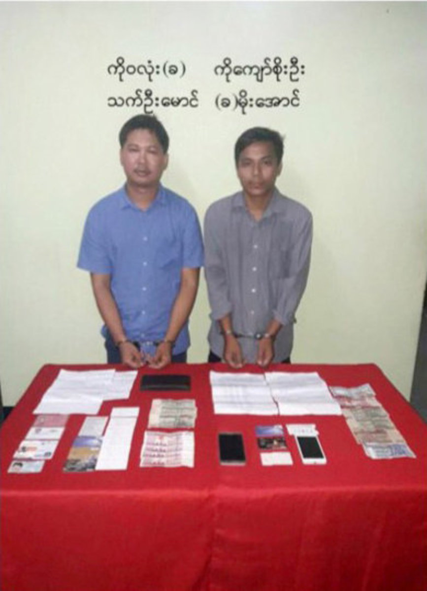 Police said Wa Lone and Kyaw Soe Oo were caught in Yangon with secret information about the operations of security forces in Rakhine, the state where the Inn Din massacre took place. The reporters, they said, were detained after being searched at a traffic checkpoint by officers who didn't know they were journalists.