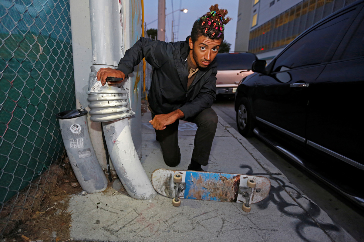 MIAMI BEACH, Florida (Reuters) - With a police officer close behind, Israel Hernandez-Llach ducked into an apartment building and dashed down the hall. Bursting through a rear exit, he scrambled over an iron fence, landing hard on a parked car, and sprinted across the parking lot.