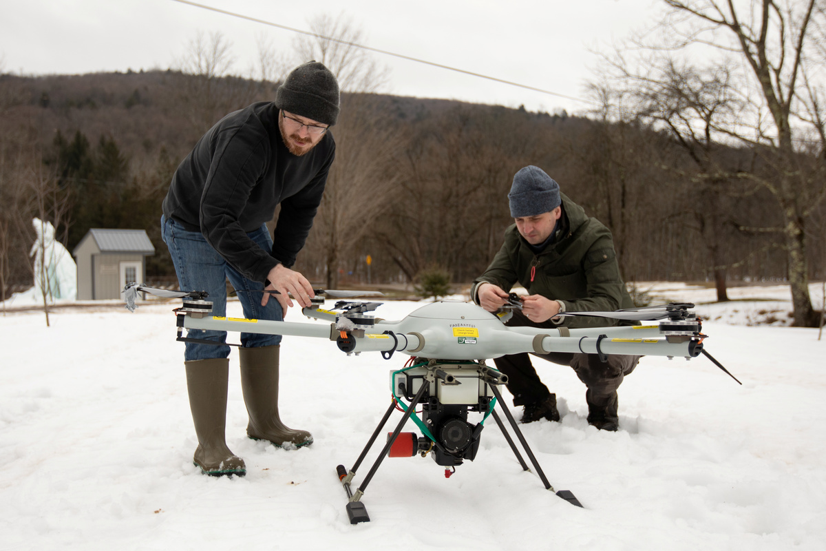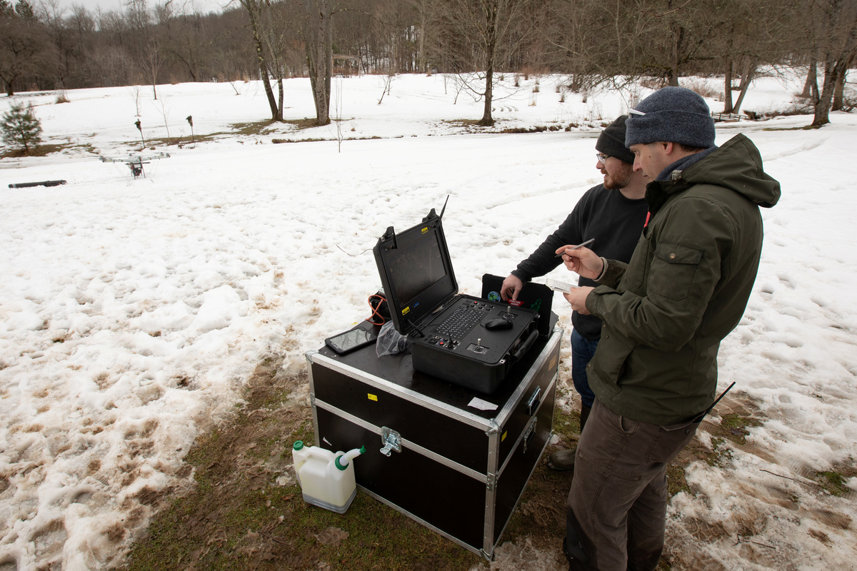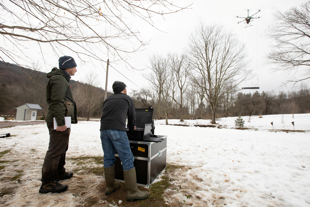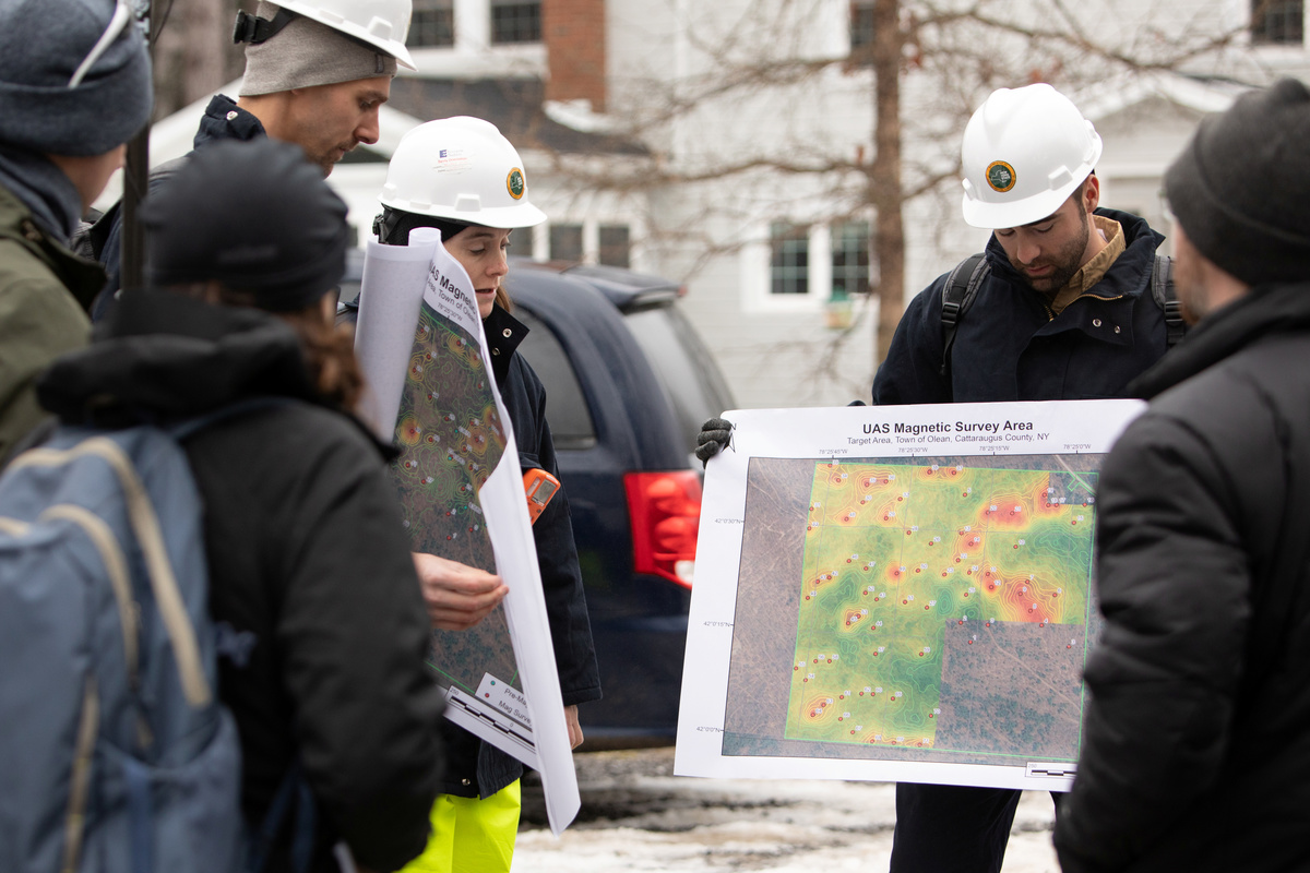 The abandoned well lies in the forests of Olean, New York, which was an oil boomtown at the turn of the 20th century. The site was one of 72 locations logged by geophysicists Tim de Smet and Alex Nikulin in December, researchers from Binghamton, using a drone equipped with a metal detector, part of a program launched in 2013 to help New York identify and plug abandoned wells.