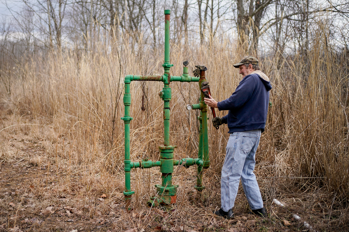In a forested area of western New York state in February, a group of state regulators, along with researchers from the State University of New York at Binghamton, trudged through the snow. They stopped at a rotting wooden structure encircling a rusted pipe.