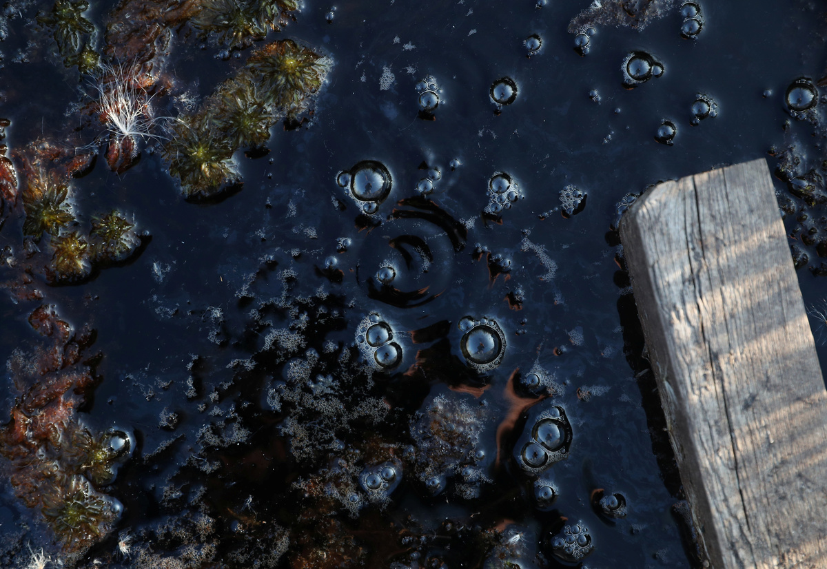 If Pasternak is serving in the air wing of the methane army, then Bennett is one of the grunts – picking her way across the bogland day after day and kneeling at the water's muddy edge, where tiny bubbles of methane burp periodically from a surface with a texture like used coffee grounds. Syringe in hand, she extracts samples of gas accumulating in floating, foam-reinforced funnels, which she will later test to determine how much methane they contain.