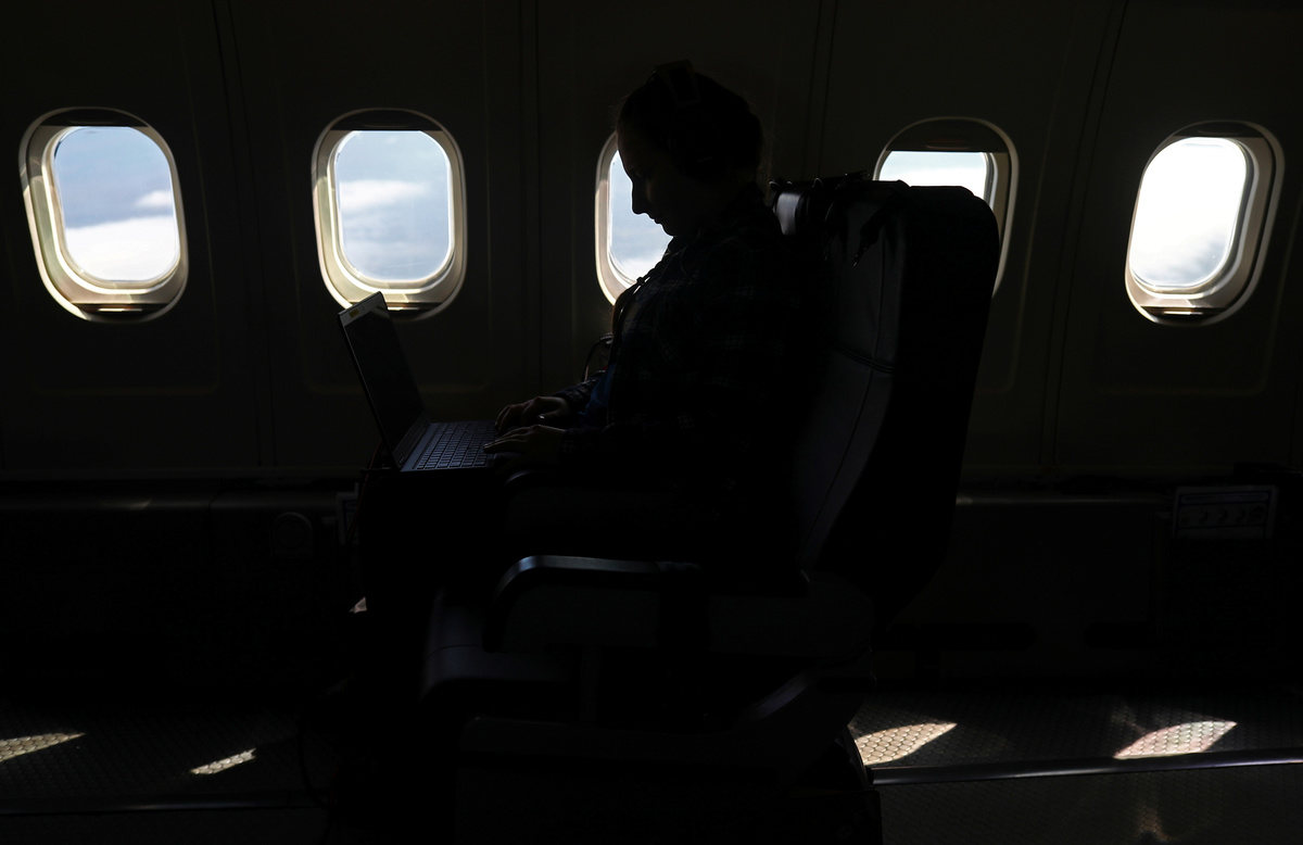 As the jet races over the waves, Pasternak's gaze flickers between the cabin window and her laptop, which displays a rolling graph of data recorded by the plane's instruments.