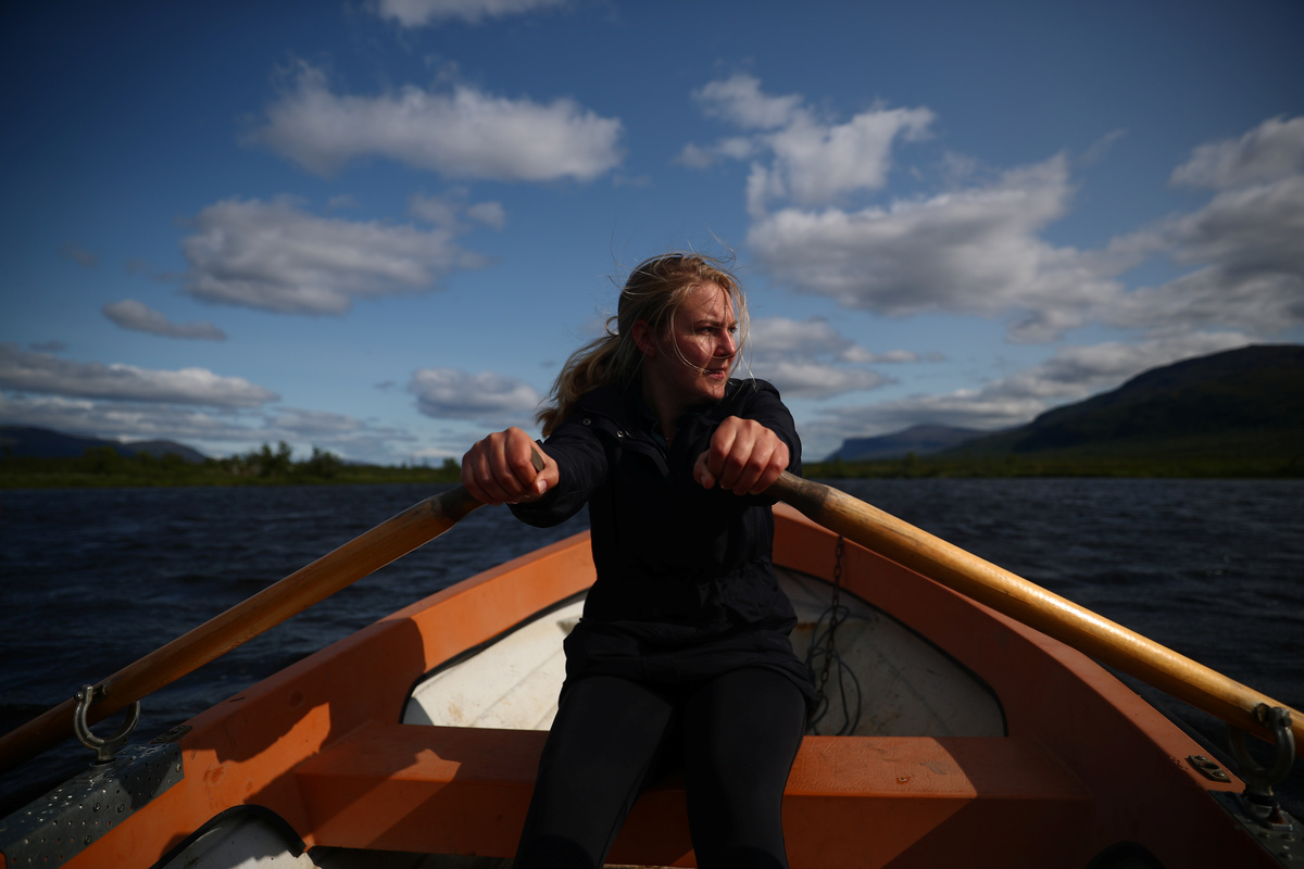 But in summer, the snowpack recedes to slithers on distant peaks, wispy heads of cottongrass peek through the soil, and the sun rarely sets. On such a day, Kathryn Bennett, 22, can be found pulling the oars of a rowboat.