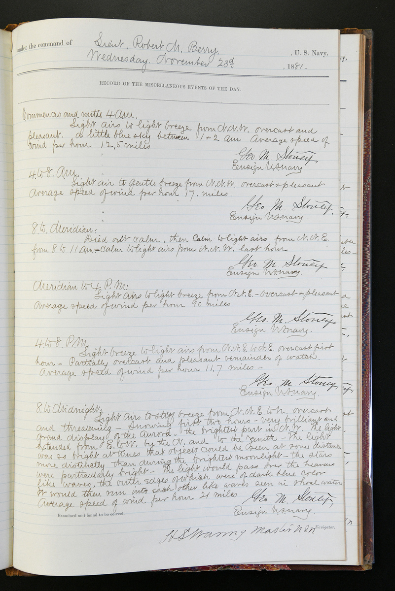 The Bear's logbooks are among the longest records of marine observation in the Arctic. Nearly unbroken, they run to tens of thousands of pages. While packed with weather observations, the logs are also terse and unrevealing, even during Healy's most dramatic moments, like when he rescued 160 people from five whaling ships wrecked by a storm: