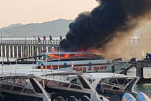 PHUKET: Two speed boats were heavily damaged when one of them caught fire while moored at a pier in Thalang district on Tuesday.