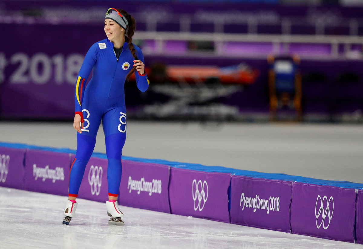 Gomez Quintero was a late call up for the Games and arrived in Korea without an official Colombian uniform, and the Dutch company that manufactures Colombia's speed skating skin suits had to fly one out to her a few days ago.