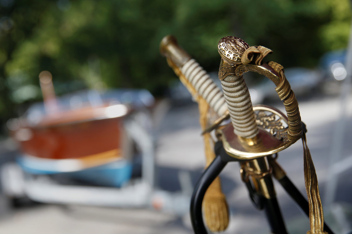 Guernsey's, which has held two previous Kennedy memorabilia auctions, is also offering two swords that were owned by two naval officers serving in the Kennedy White House and used as part of the catafalque that held Kennedy's coffin.