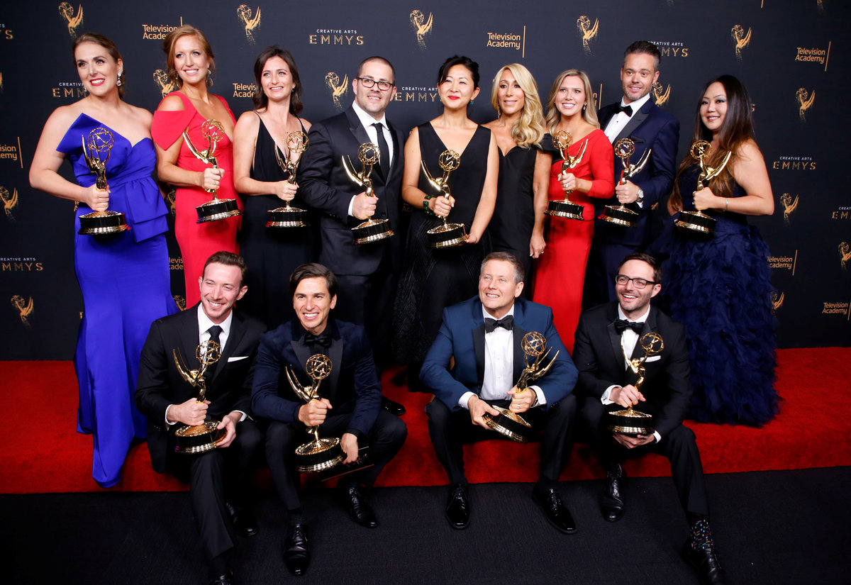 Producers of "Shark Tank" pose with their Outstanding Structured Reality Program Emmy Award backstage at the 2017 Creative Arts Emmy Awards in Los Angeles, California, U.S. September 9, 2017. REUTERS/Danny Moloshok