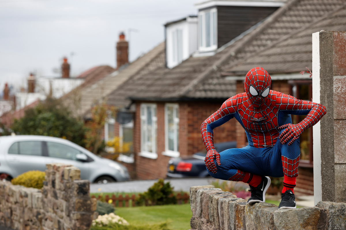 Spider-Man to the rescue! Superhero jogger cheers kids in England