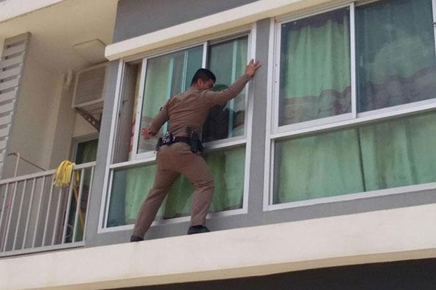 CHACHOENGSAO: A woman lying unconscious in her dormitory room after taking an overdose of pills in an apparent suicide attempt was saved by a police officer who climbed between balconies to her room in Plaeng Yao district on Monday.