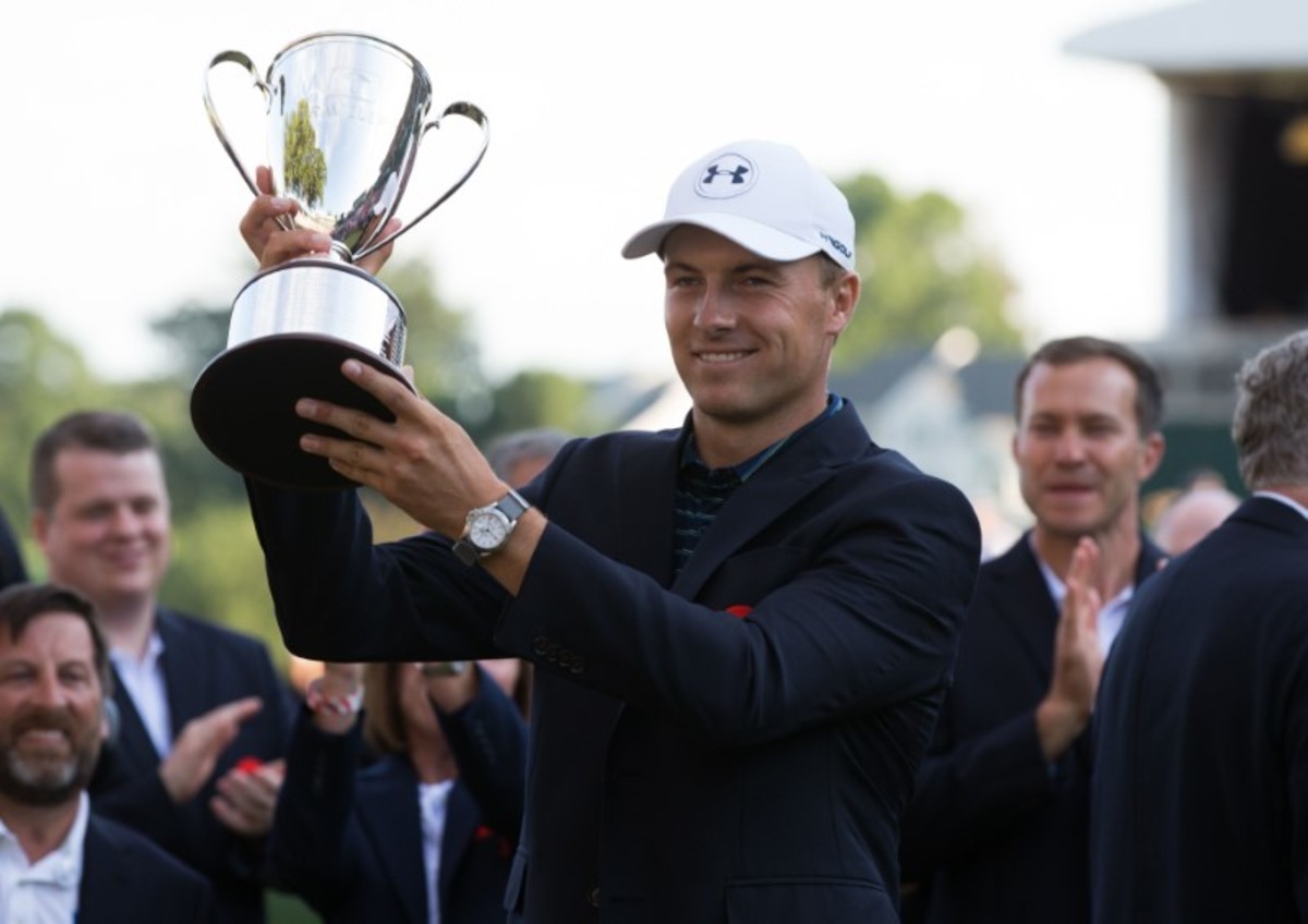(Reuters) - Jordan Spieth holed a bunker shot to win the Travelers Championship in a playoff on Sunday and become the second youngest player in the modern era behind Tiger Woods to post 10 PGA Tour victories.