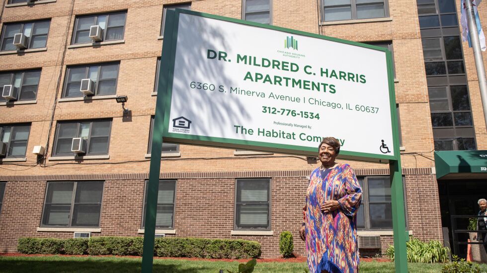 “I think she sees us all as her children,” Tracey Scott, the housing authority’s CEO, said Wednesday at the dedication of a newly rehabbed senior apartment building at 6360 S. Minerva Ave. that will carry Harris’ name.