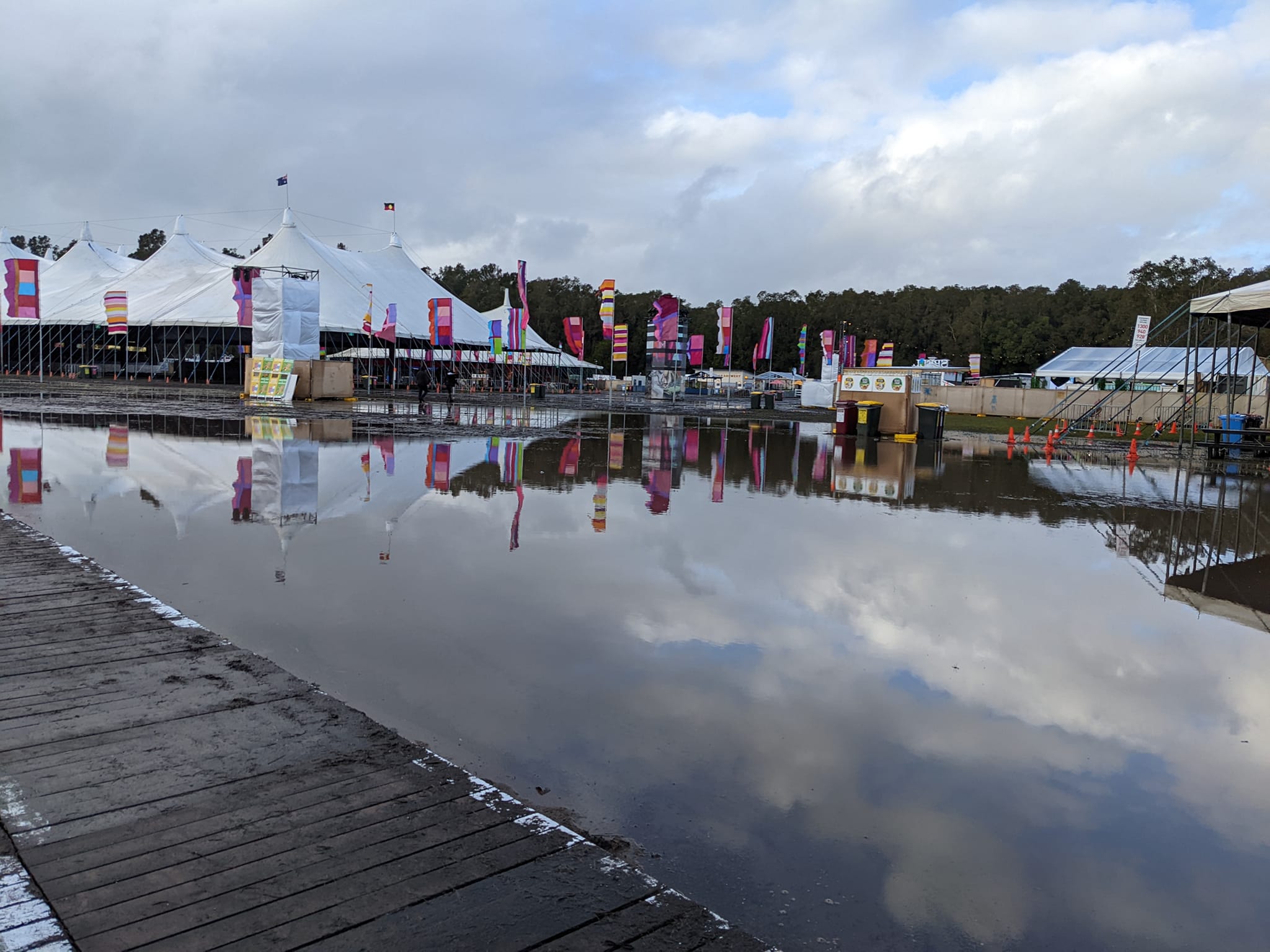 Festival co-founder Jessica Ducrou said pump trucks had been used overnight to try to drain some areas of the sodden site.